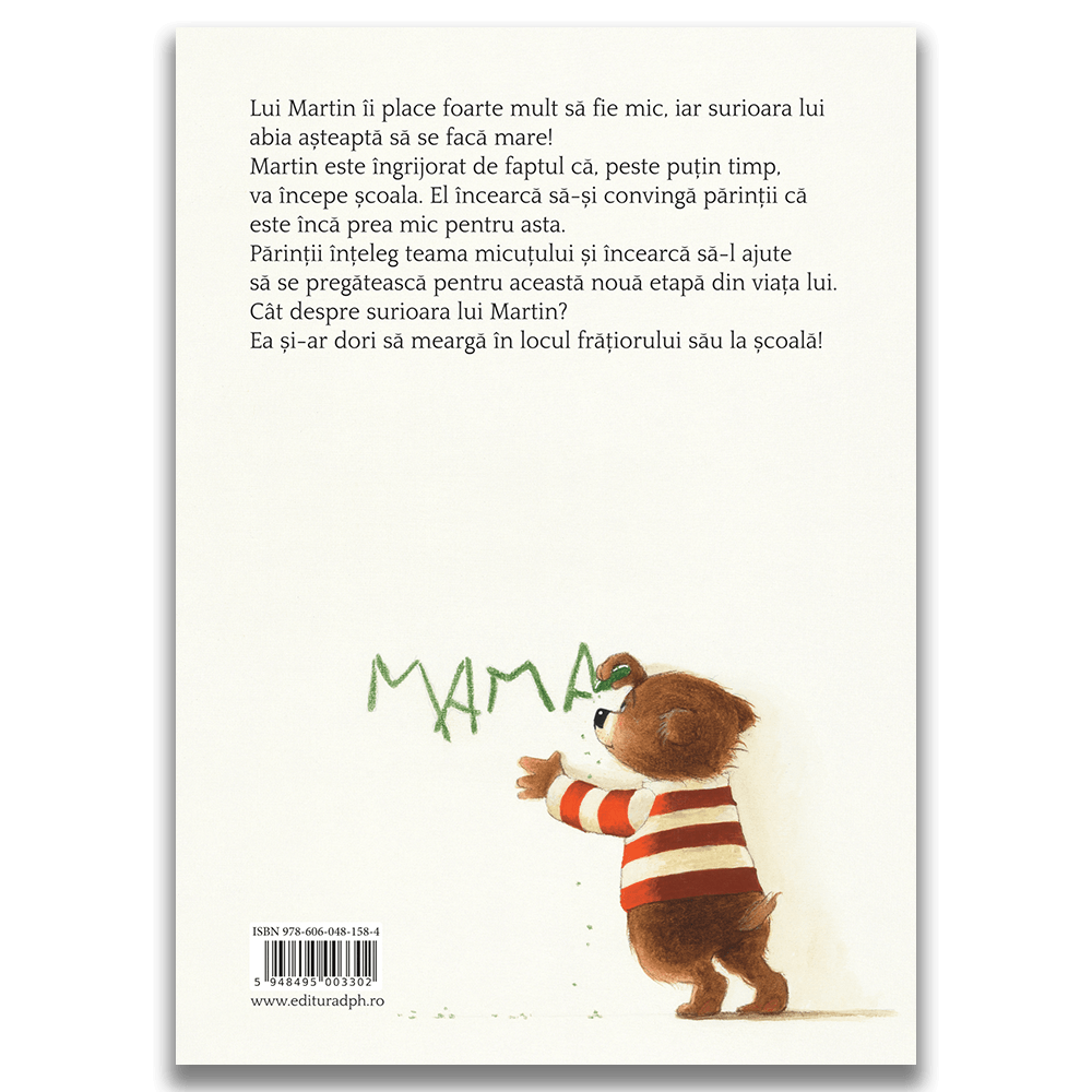 Lui Martin îi place foarte mult să fie mic, iar surioara lui abia așteaptă să se facă mare! Martin este îngrijorat de faptul că, peste puțin timp, va începe școala. El încearcă să-și convingă părinții că este încă prea mic pentru asta. Părinții înțeleg teama micuțului și încearcă să-l ajute să se pregătească pentru această nouă etapă din viața lui. Cât despre surioara lui Martin? Ea și-ar dori să meargă în locul frățiorului său la școală!