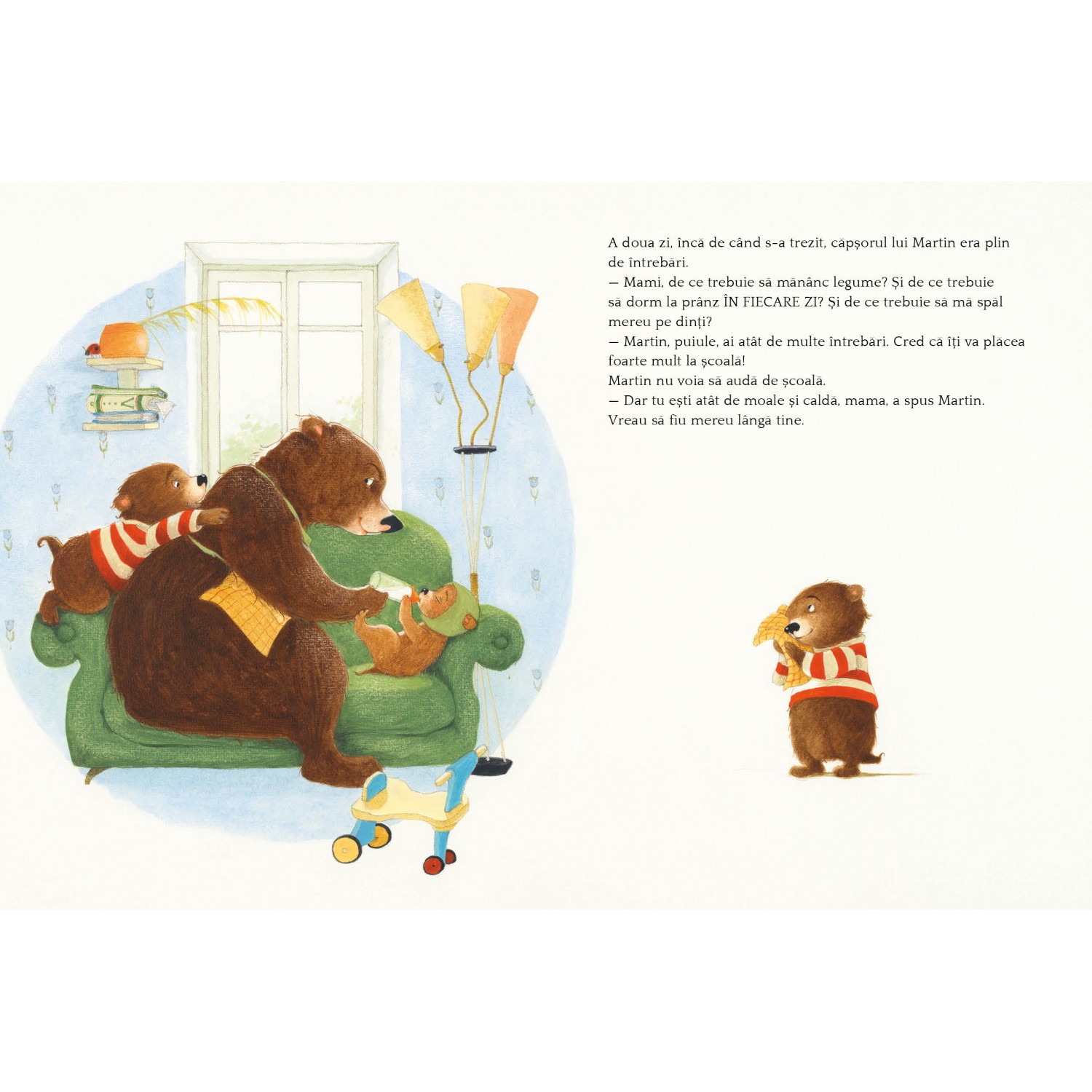 Exact acest lucru fac părinții ursulețului Martin în această carte. Răspund cu răbdare la toate întrebările fiului lor. Nu râd niciodată de el și îi iau în serios grijile lui. Acest lucru îl încurajează și îi arată ce băiat mare este.