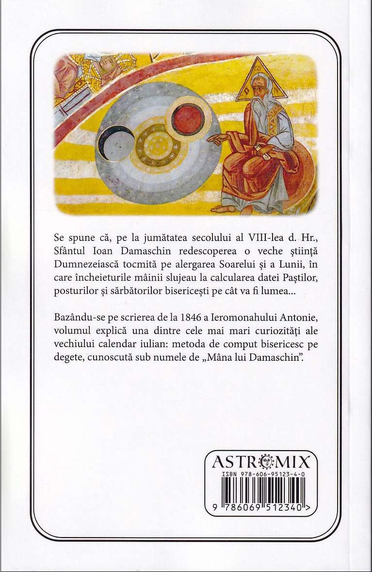 Bazându-se pe scrierea de la 1846 a Ieromonahului Antonie, volumul explică una dintre cele mai mari curiozități ale vechiului calendar iulian: metoda de comput bisericesc pe degete, cunoscută sub numele de „Mâna lui Damaschin”.