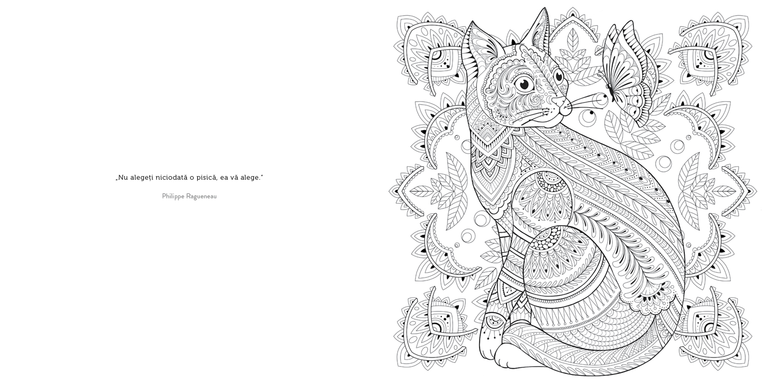 Fiecare pagină îți oferă un moment de relaxare și reflecție, îmbinând arta decorativă cu gânduri memorabile despre grația, misterul și independența pisicii. Este mai mult decât o carte de colorat – este un spațiu personal de exprimare creativă și de liniște interioară.