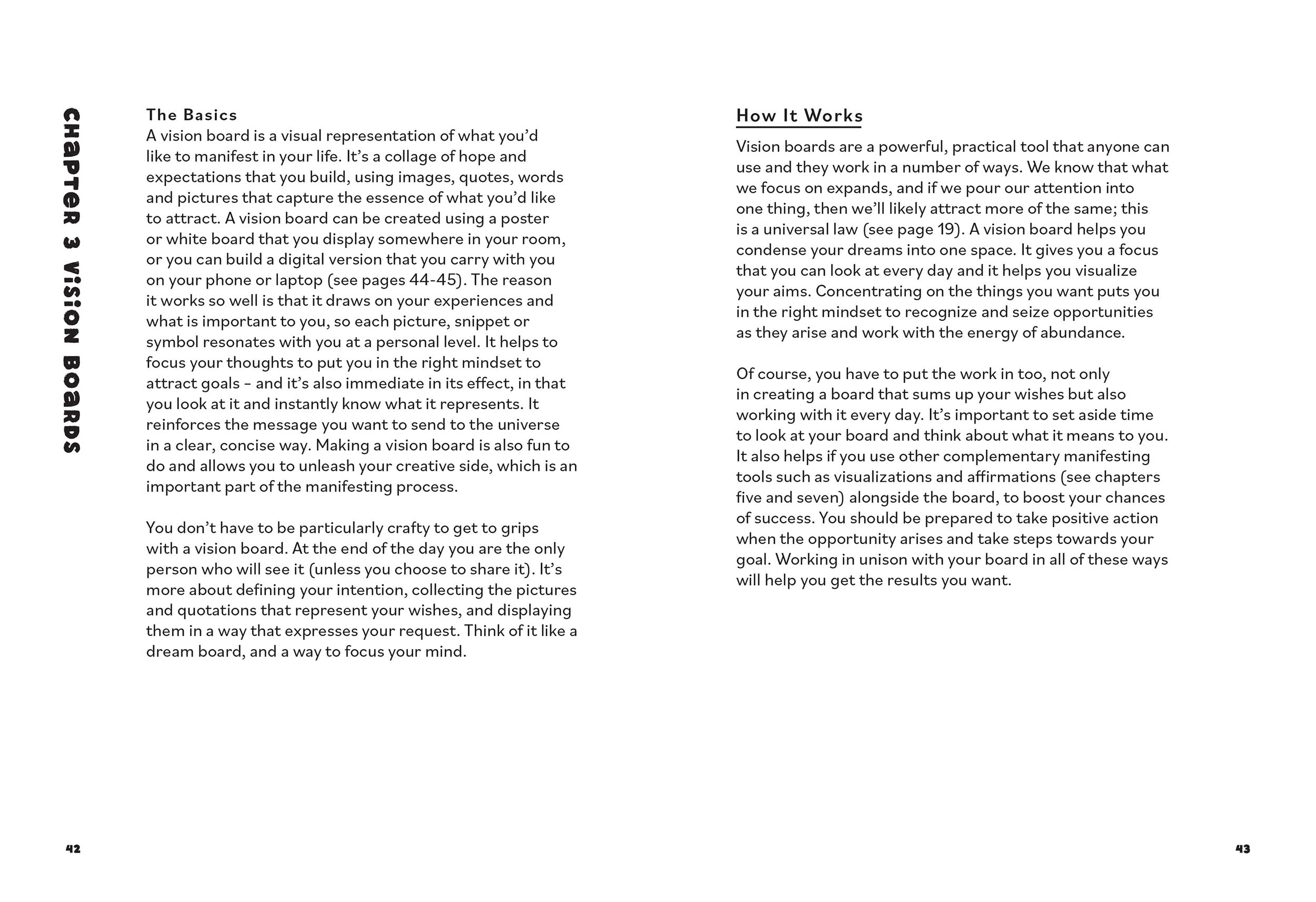 Manifestation is based on one of the main principles of the universe: like attracts like. We are all in control of our destiny, even if we don't realize it. All it takes is a little imagination, focus and persistence. This step-by-step guide, with practical activities and suggestions, will help you discover the power of manifesting. You'll learn how to use techniques such as vision boards, affirmations and scripting to work towards your goals, from simple aspirations to larger long-term dreams.