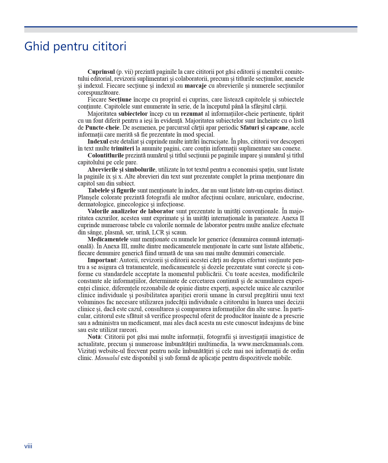 Prin modul structurat de prezentare a bolilor, Manualul MERCK le oferă profesioniștilor din domeniul sănătăţii și studenților medicinişti explicații complete, transparente şi practice, privind modalitatea de a diagnostica și a trata afecțiunile medicale. Totul în 3568 de pagini, completate de 16 planșe color.