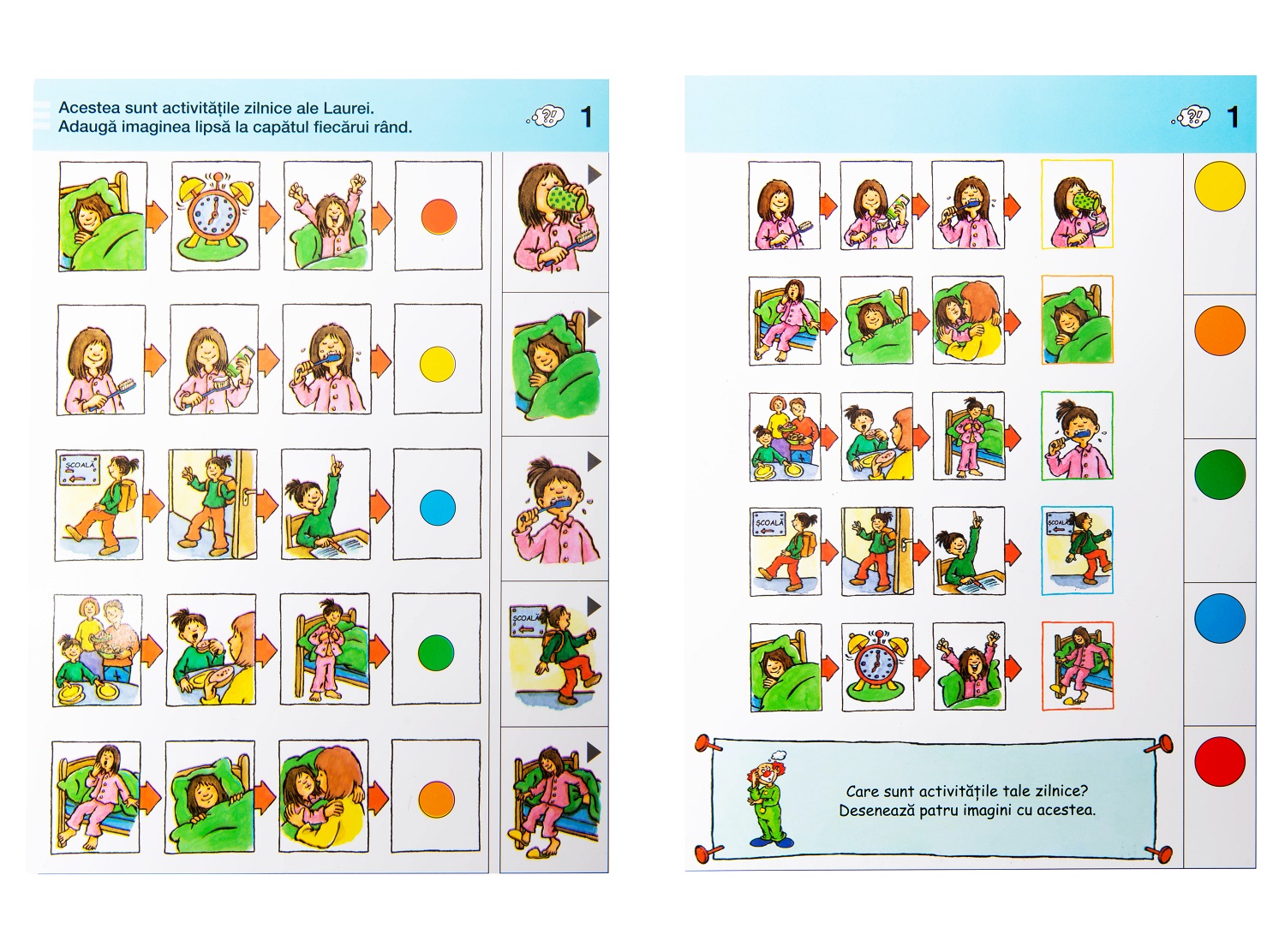 Secvențele logice din ultimele exerciții necesită abilitatea de abstractizare. Înainte de a găsi soluția, copiii trebuie să recunoască sistemul sau termenul generic din spatele fiecărei imagini. Acest aspect presupune o mai mare concentrare, motivație și dorință.