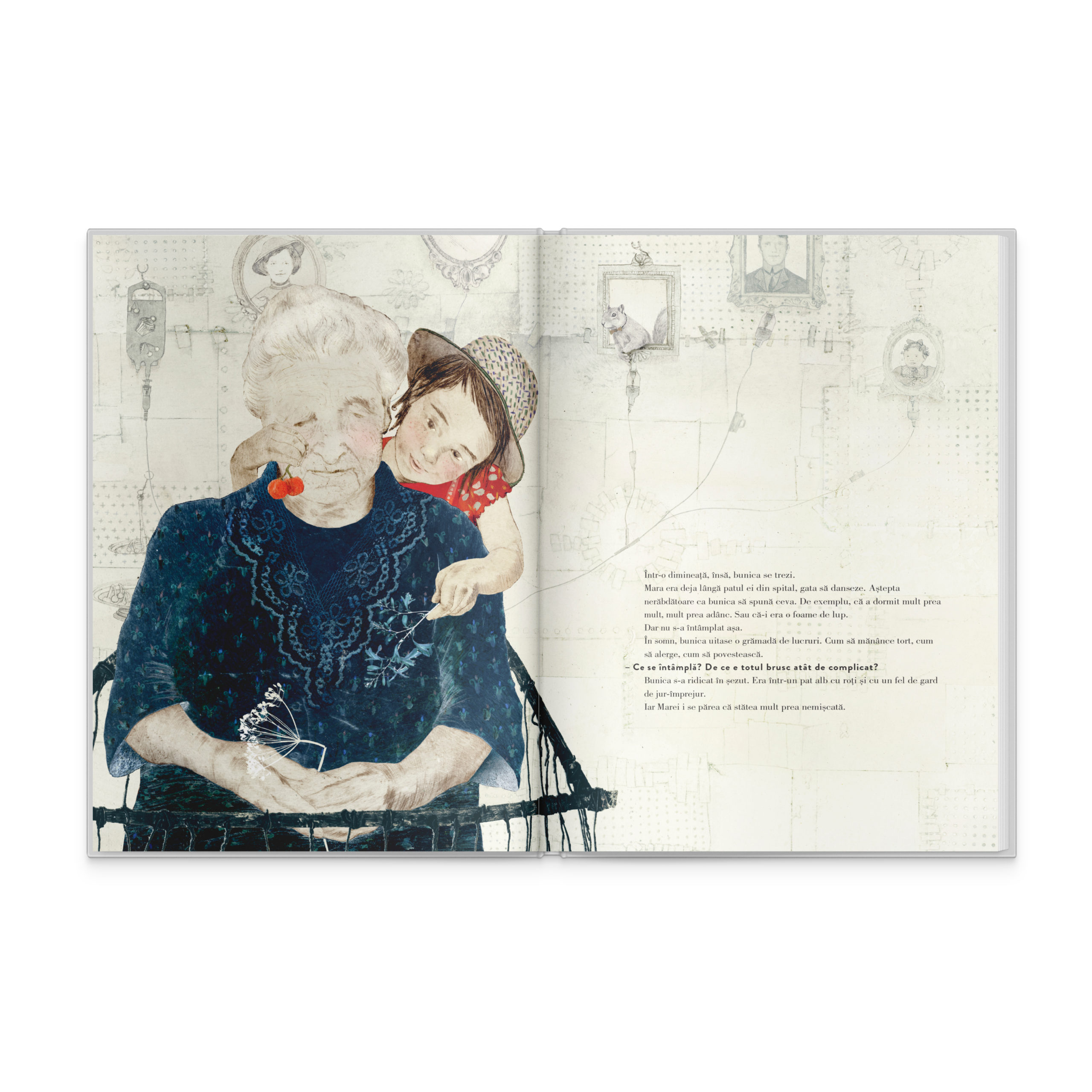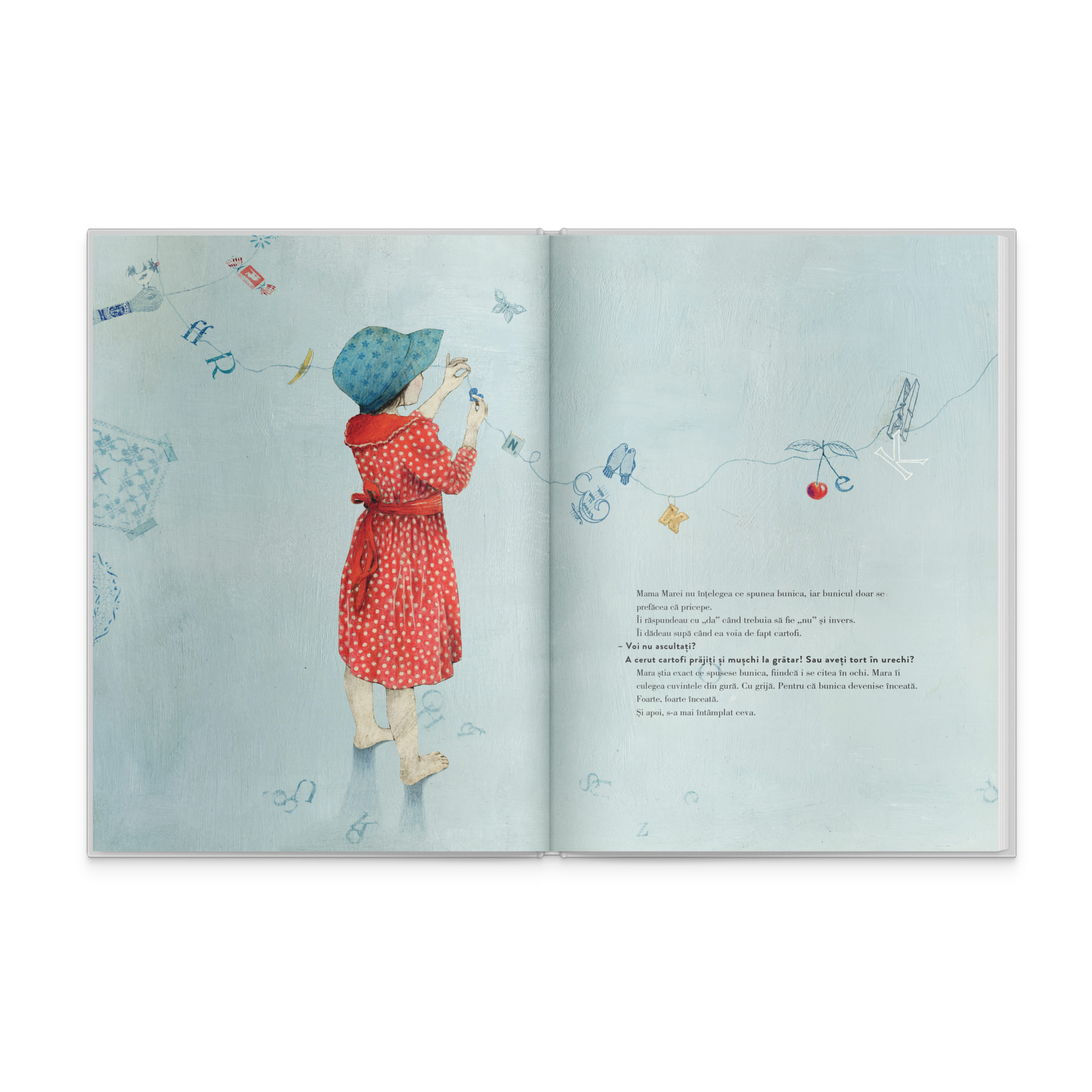 Povestea Marei, scrisă de Tine Mortier și ilustrată de Kaatje Vermeire, începe sub cireș, pe scaunul de ratan, acolo unde mama ei a născut-o, aproape citind dintr-o carte. Și, deloc surprinzător, în același ton al vitalității și al nerăbdării ne este schițat și parcursul său – crescând cu viteza luminii, la șase luni copila înconjura explorativ grădina și primul cuvânt rostit i-a fost „tort”. Prietena cea mai bună a fetiței era bunica, iar poveștile și dulciurile înfulecate, respectiv neastâmpărul amândurora, consolidau, cu fiecare întâlnire, legătură lor ghidușă.