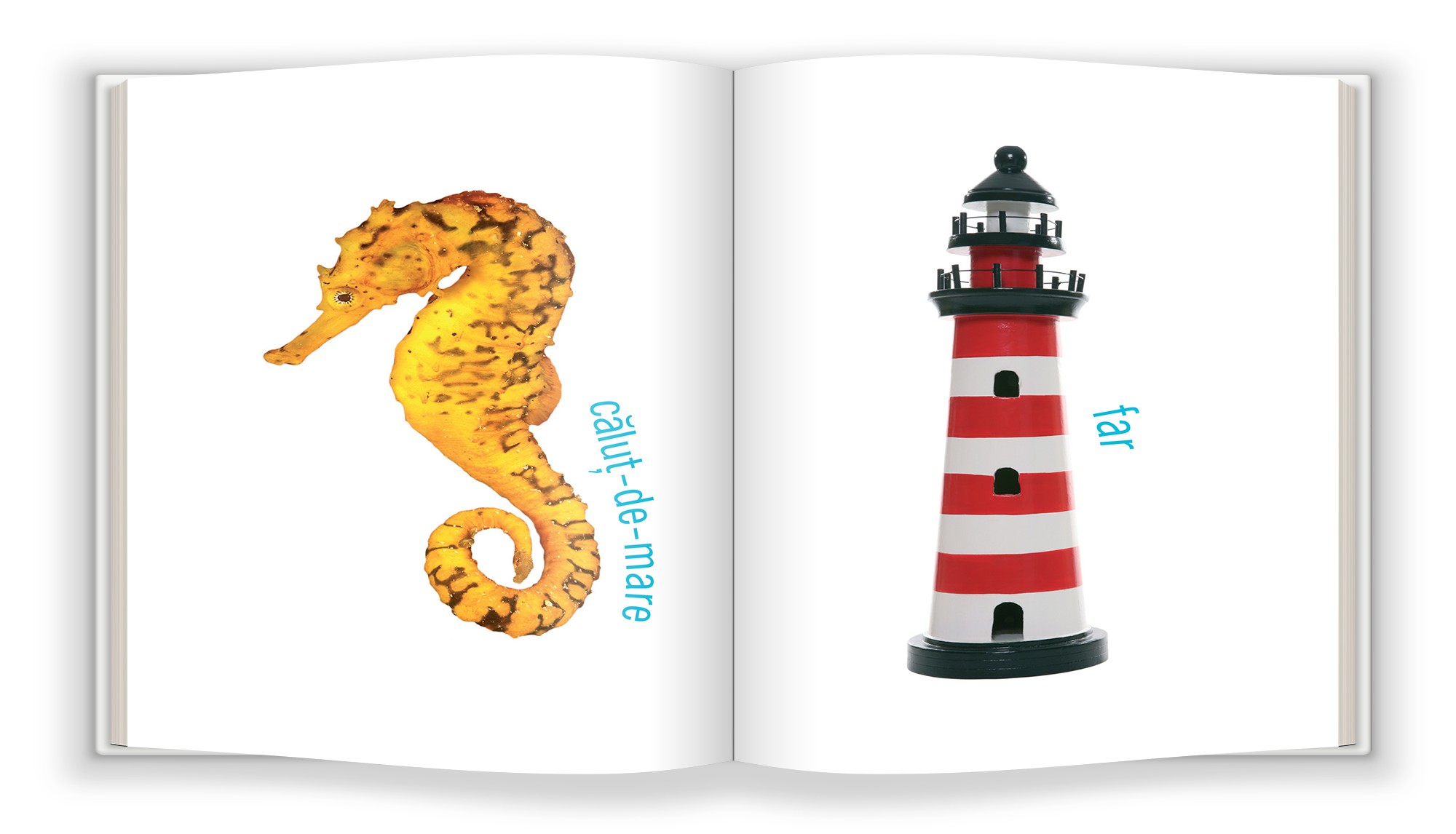 Utilă pentru a-i învăța pe bebeluși cuvinte noi, cartea prezintă zece imagini cu viețuitoare sau alte elemente specifice mărilor și oceanelor. Este cartonată integral, ușor de apucat și rezistentă la răsfoire.