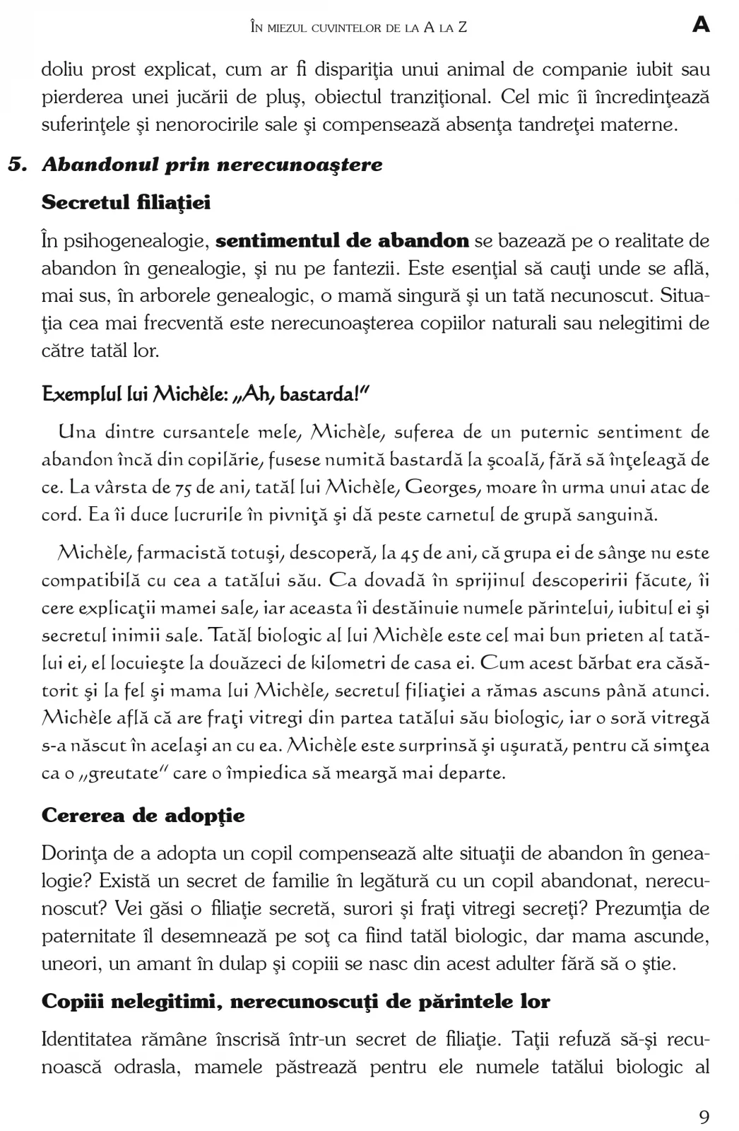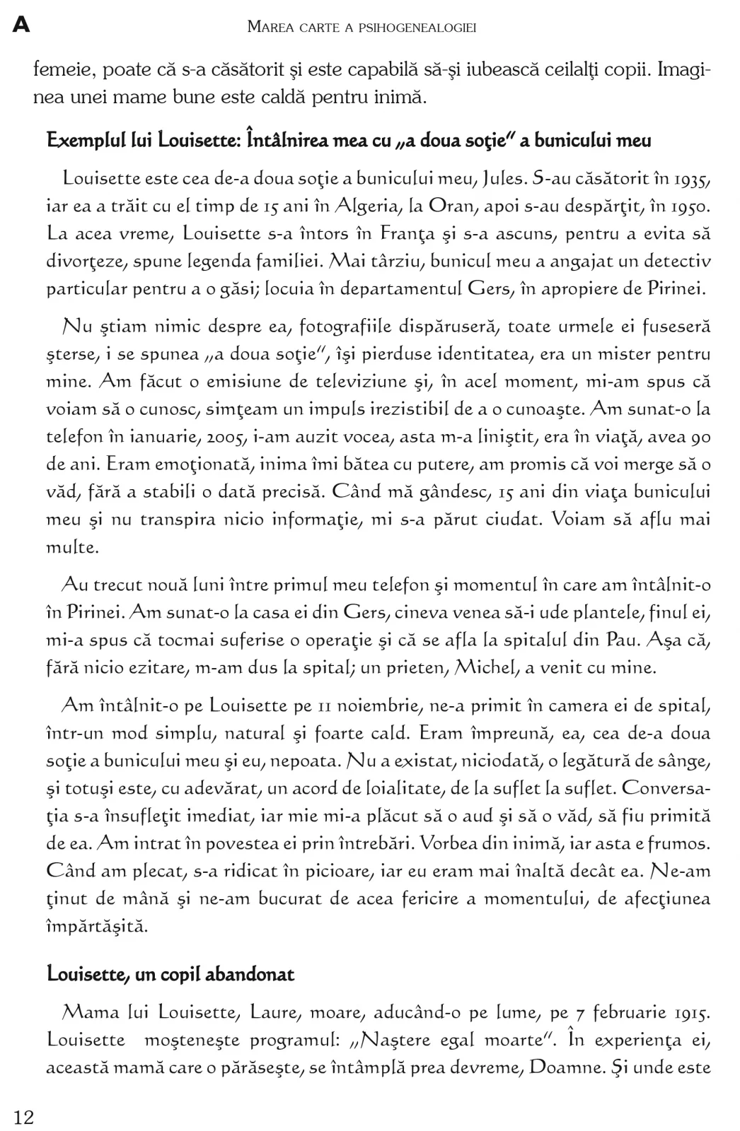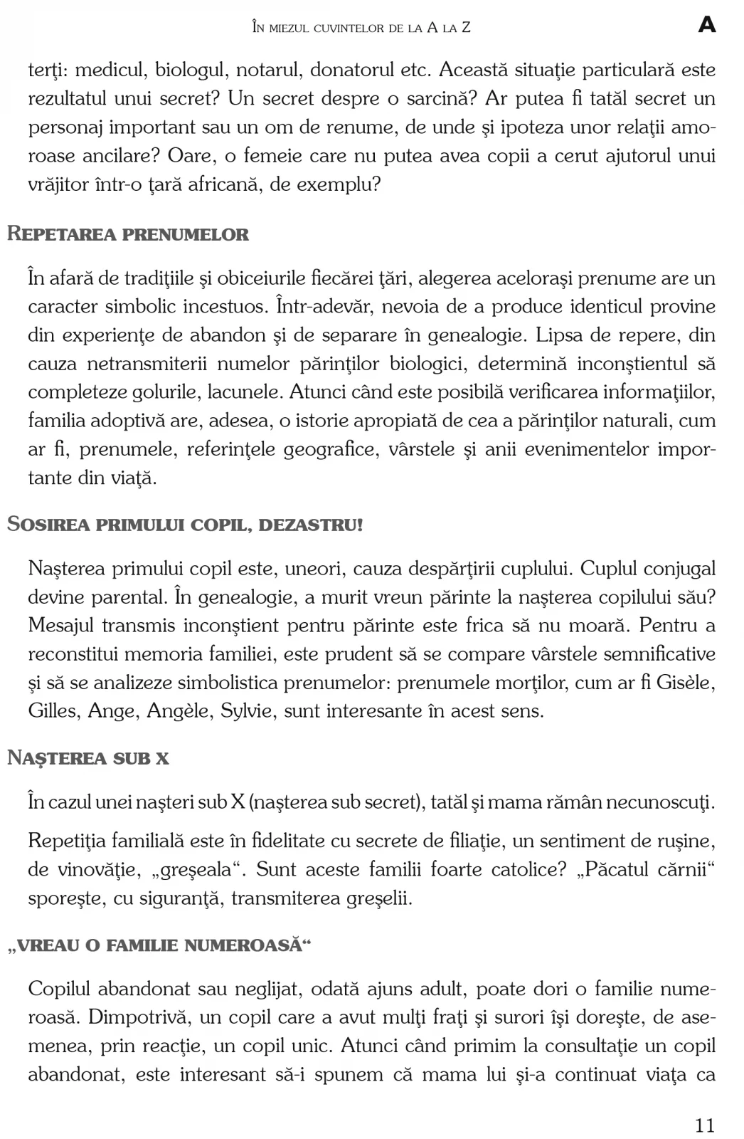 „Tot ceea ce ati vrut vreodata sa stiti despre familia dumneavoastra si nu numai...”, nevoia de a redescoperi traditiile familiale, radacinile, valorile, transmisiunile, mostenirile, toate aceste informatii fac parte din Marea Carte a Psihogenealogiei.