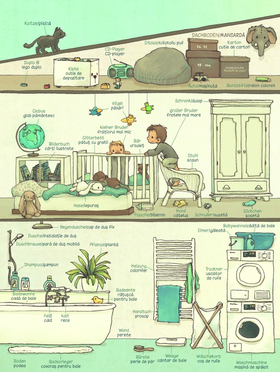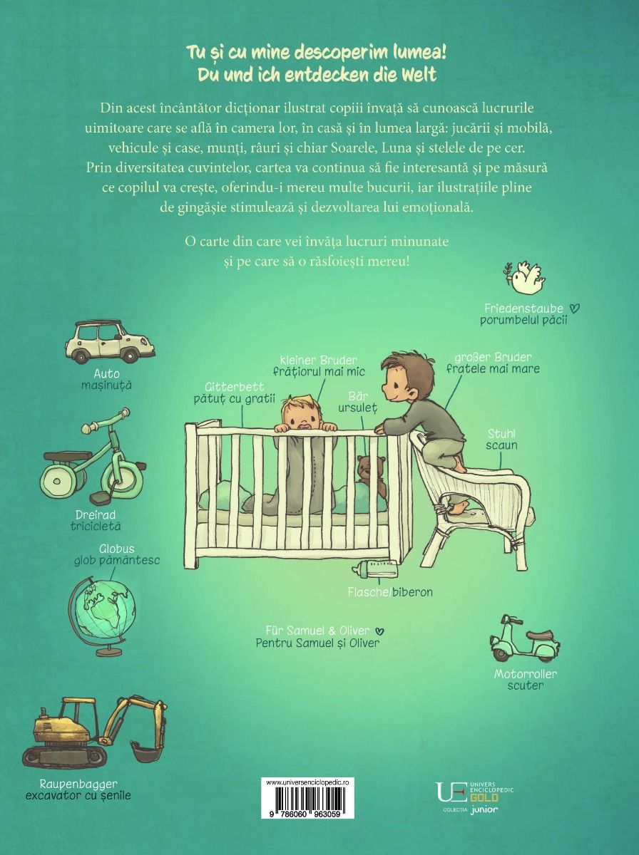Cu acest încântător dicționar ilustrat, copiii învață să cunoască tot ce ne formează și ne unește: părțile corpului, îmbrăcămintea, membrii familiei, sentimentele și multe altele. Prin diversitatea cuvintelor, cartea va continua să fie interesantă și pe măsură ce copilul va crește, pregătindu-i multe bucurii, iar ilustrațiile pline de gingășie stimulează și dezvoltarea lui emoțională.