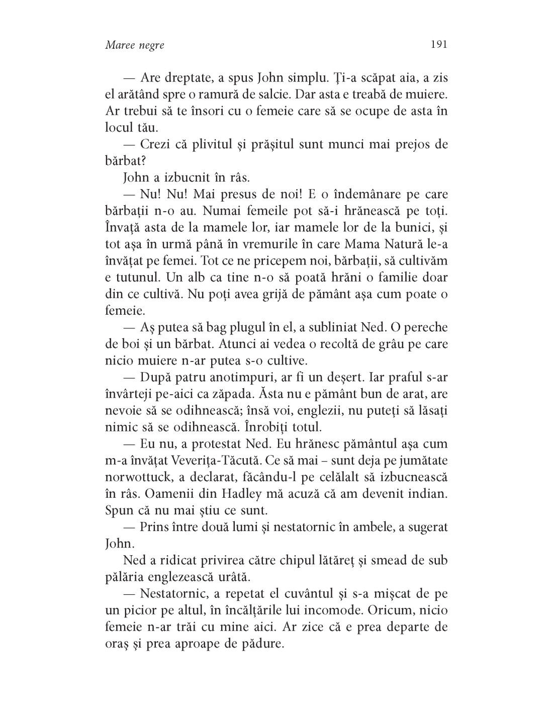 Anul 1670. Ajunul Nopţii de Sânziene. Doi vizitatori neaşteptaţi sosesc la o magazie părăginită de pe malul Tamisei. Mai întâi, James Avery, care speră s-o regăsească pe Alinor, iubita părăsită cu douăzeci de ani în urmă, şi, odată cu ea, singurul lucru pe care averea lui nu-l poate cumpăra – pe fiul şi moştenitorul său. Apoi, Livia, o văduvă frumoasă din Veneţia şi pretinsa noră a lui Alinor, care îi aduce vestea că fiul ei s-a înecat în apele lagunei, veste pe care femeia o pune la îndoială, împărtăşindu-şi bănuielile fratelui ei, Ned, plecat departe, tocmai în Noua Anglie, pentru a-şi face un rost pe meleagurile pionierilor englezi şi ale indienilor, care se îndreaptă inevitabil spre război. Plasat în Londra Restauraţiei, unde mizeria îşi dă mâna cu splendoarea, pe străzile opulente ale Veneţiei şi la frontiera îndelung disputată a primelor colonii americane, Maree negre este o poveste captivantă despre viaţa şi frământările femeii din secolul al XVII-lea.