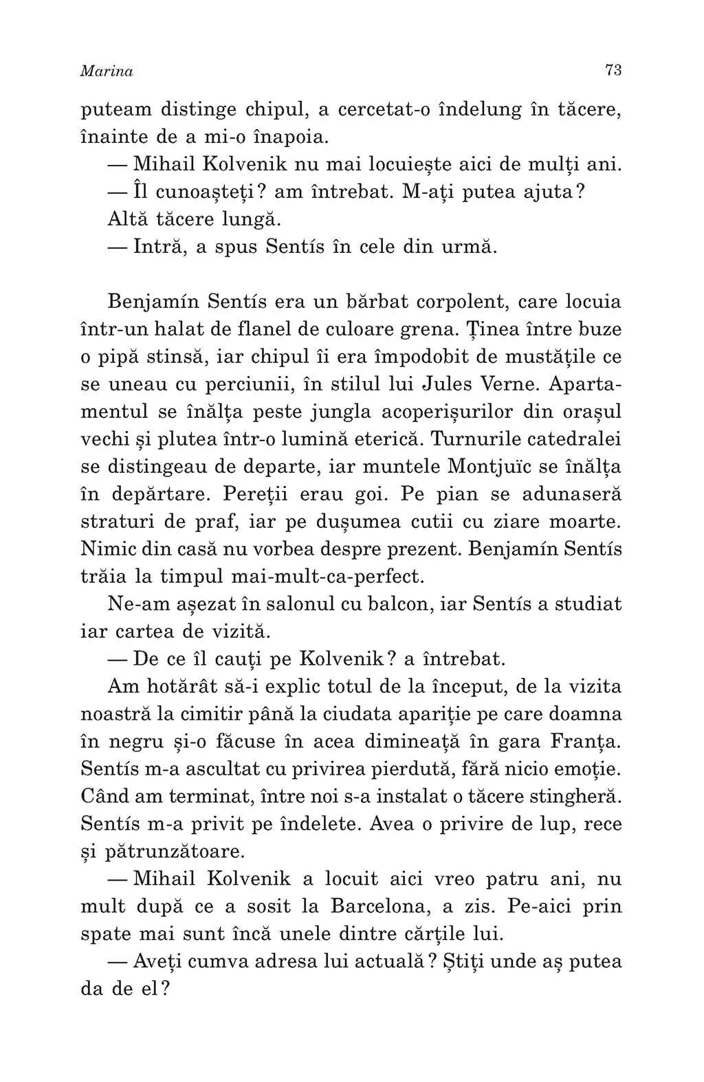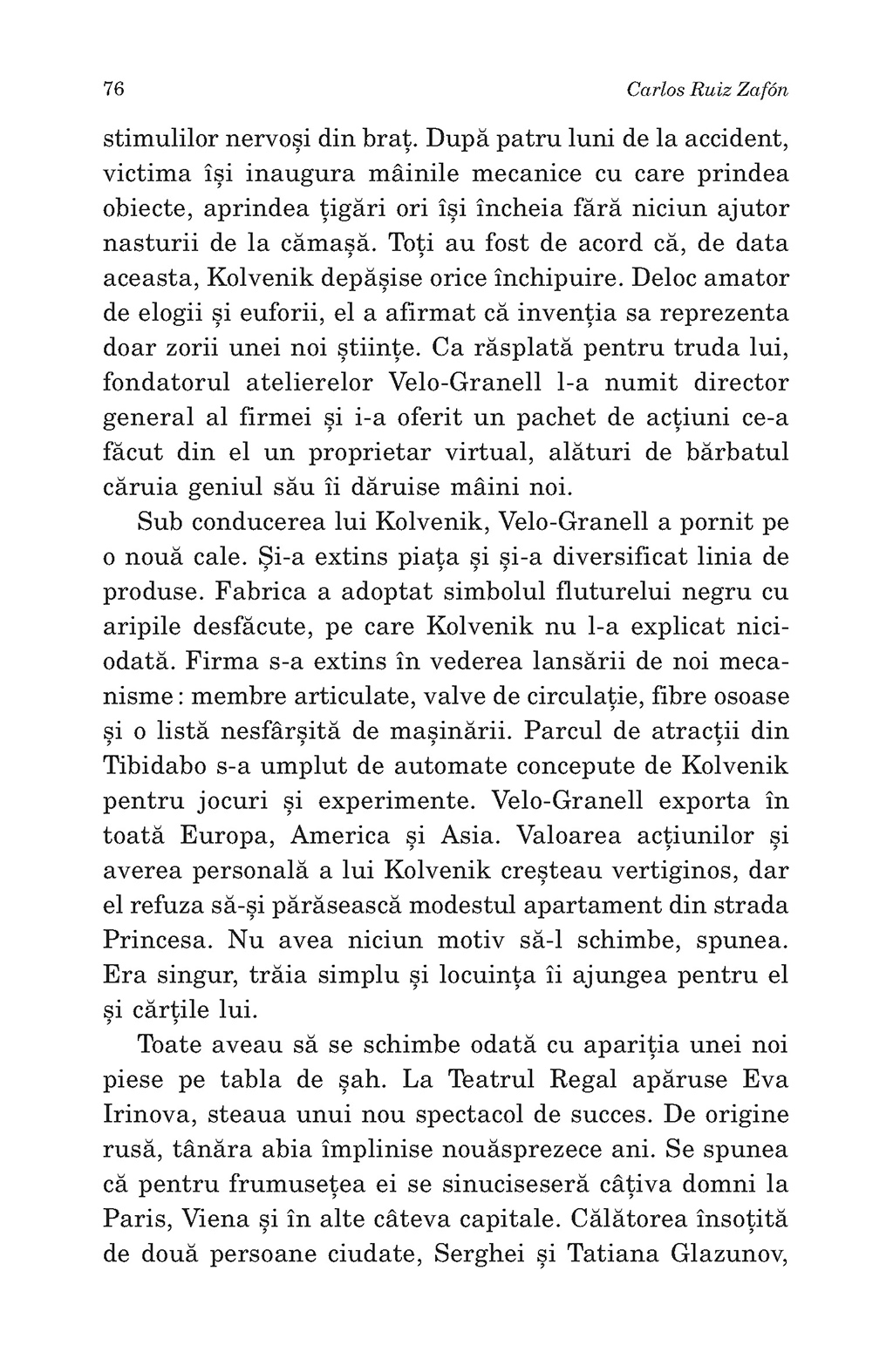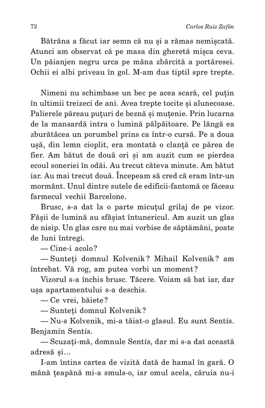 „Bun venit într-o lume misterioasă, unde timpul ia turnuri diabolice, iar umbrele sînt întunecate şi infricoşătoare.” (Carlos Ruiz Zafón)