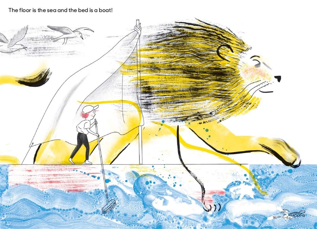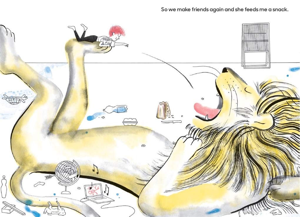 Marta is a passionate artist. One day, she paints a lion with such conviction that it bounds off the page and into her studio. So begins a relationship full of invention, creativity and exuberance. Marta paints a universe and embarks on a series of funny and surreal escapades with the lion, but eventually things get out of control – the lion is too wild and too hungry, and he disappears in the middle of their best adventure. Marta is inconsolable, but the only way out is through – so she takes another piece of paper and starts all over again. Beautifully illustrated by powerful and effective line drawings, this story revels in the joy of artistic creation and unbound imagination.