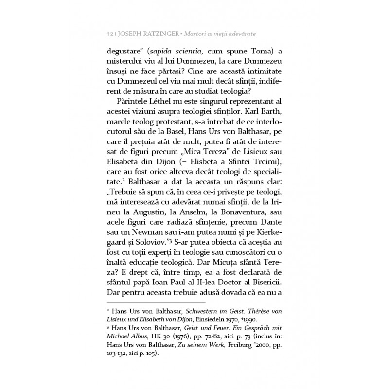 În opera lui Joseph Ratzinger, emeritul papă Benedict al XVI-lea, predicile și meditațiile despre viața sfinților ocupă un loc important. Pentru el, istoria Bisericii este o “istorie personală” (A. Buckenmaier) și trăiește din concretețea existenței creștine. Sub patina venerației adesea de secole, el dezvăluie în mod repetat mesajul fundamental al credinței că omul se găsește cu adevărat pe sine doar atunci când se pierde în fața lui Dumnezeu și își exprimă dragostea pentru Dumnezeu în dragostea pentru aproapele său.