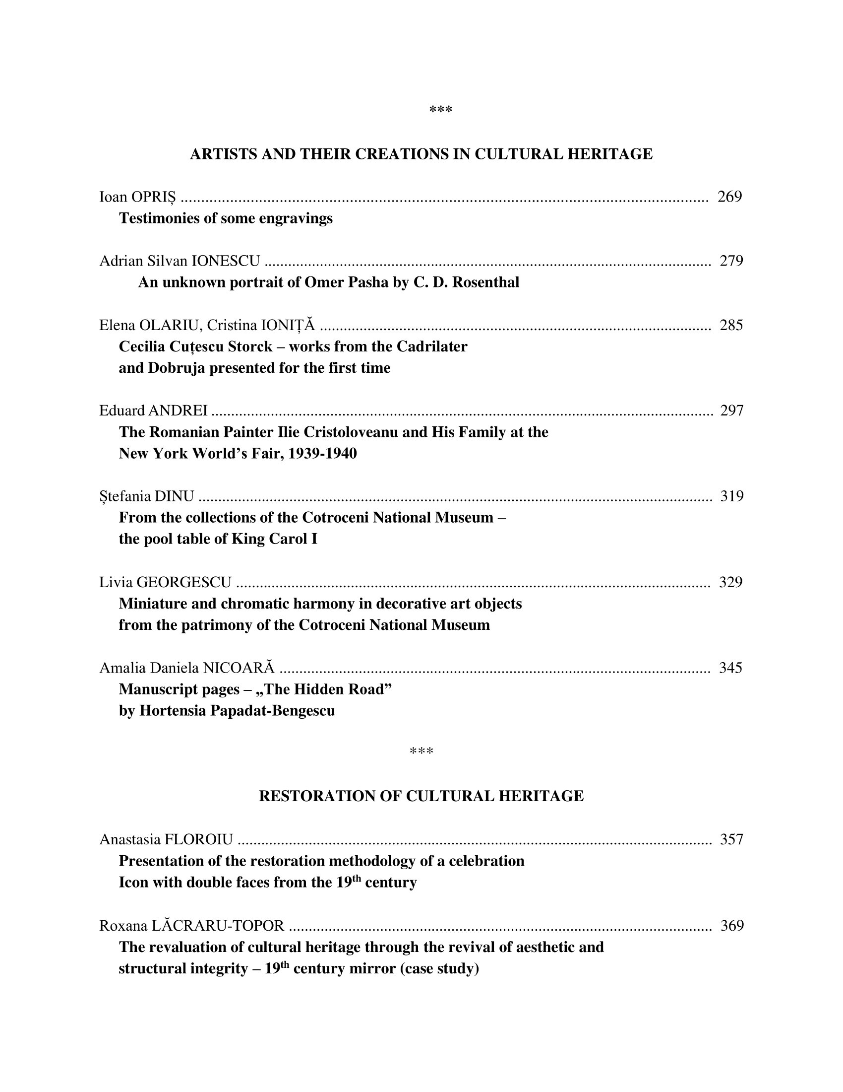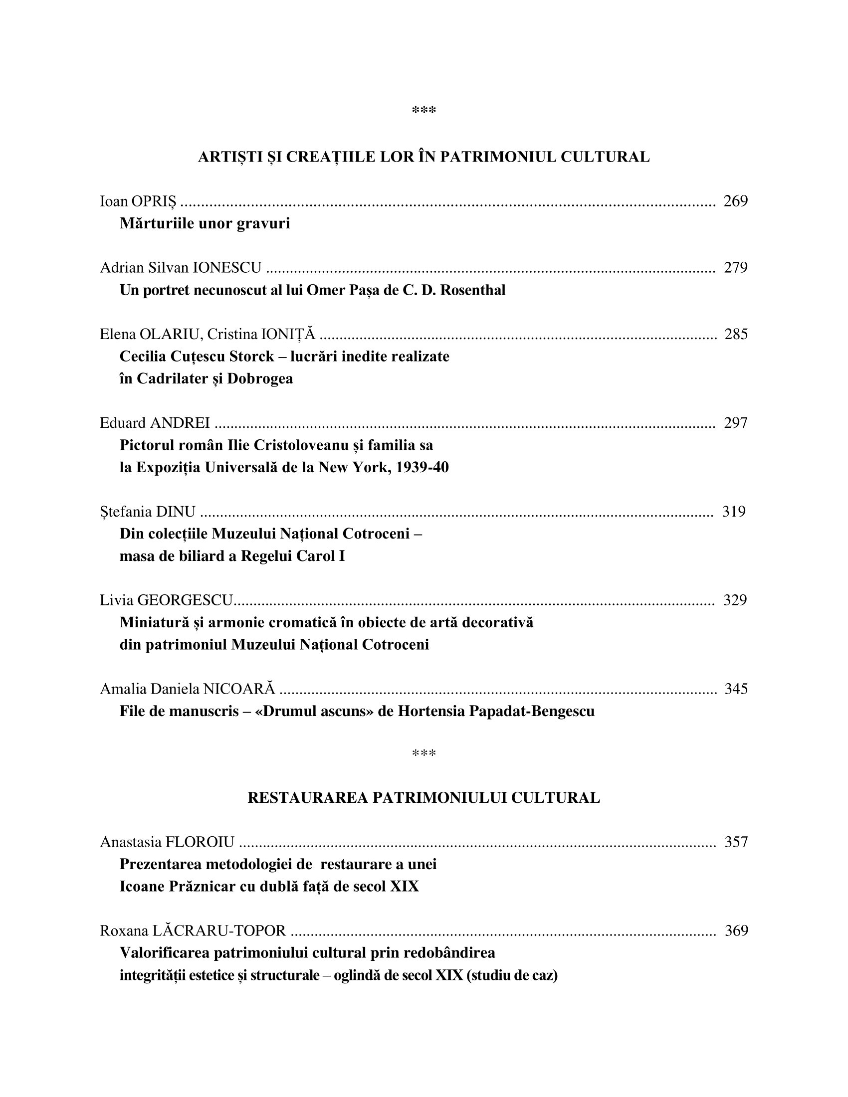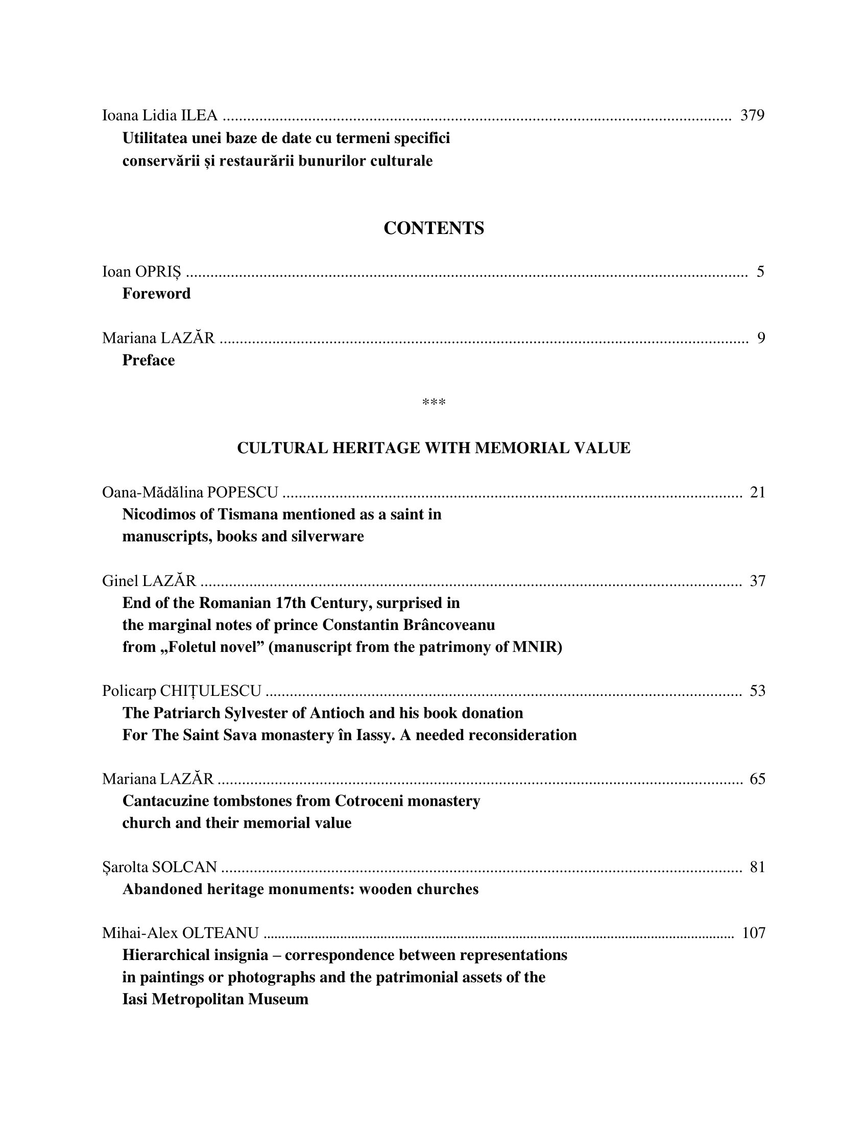Scurtă descriere: Muzeele fac parte dintre instituțiile creatoare de cunoaștere, cu precădere despre patrimoniul istoric și cultural al unui neam. Această dimensiune a activității muzeale o are în vedere și prezentul volum, care reunește douăzeci și cinci de articole elaborate de specialiști în domeniu, dintre cele prezentate drept comunicări în cadrul ediției a XXIV-a a Colocviului Național de Istorie, la secțiunile Istorie și Patrimoniu Cultural. Valoarea principală care le definește este aceea memorială, prin intermediul lor readucându-se în atenția prezentului evenimente istorice sau oameni din trecut, care, prin gândirea sau faptele lor, au lăsat urme mai mult sau mai puțin semnificative în memoria neamului, în istoria și cultura sa. Pornind de la aceste mărturii istorice, investigând și alte tipuri de surse, reușim să ne apropiem, într-un anumit fel, de oamenii care au gândit și au împlinit proiecte politice sau sociale ori de cei care au creat sau cărora le-au aparținut ori la care fac referire bunurile de patrimoniu cultural, să cunoaștem aspecte relevante din viața lor și despre societatea în care au trăit. Prin dimensiunea lor memorială ele ne „apropie”, într-un anumit fel, de epoci trecute, de ideologii, credințe, mentalități și practici sociale, politice ori religioase.