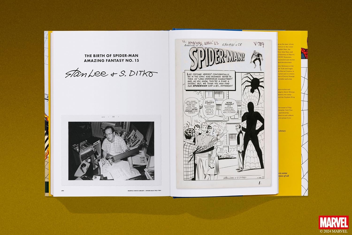 When Stan Lee first pitched the idea of Spider-Man in 1962, his boss was full of objections: People hate spiders. Teenagers aren’t lead characters; they’re sidekicks. He should be glamorous and successful, not a friendless loser. But Stan persisted and Martin Goodman let him give the unlikely hero a tryout in Amazing Fantasy, which was already slated for cancellation. With Spider-Man on the cover, No. 15 shot to the top of Marvel’s best-seller list for the year, and the rest is history.Amazing Spider-Man, which debuted seven months later, broke the comics mold. Peter Parker lived in uncool Queens, was always broke, continually worried about his Aunt May, was unlucky in love, and was constantly getting yelled at by his boss, Daily Bugle publisher J. Jonah Jameson. Spider-Man had the quips and confidence that Parker lacked, but learning to use his powers wasn’t always easy. He often seemed on the verge of defeat against the rogue’s gallery of classic foes that debuted in the first couple of years: Vulture, Doctor Octopus, Sandman, Lizard, Electro, Kraven the Hunter, Mysterio, and the Green Goblin. Much of the credit for Spider-Man’s greatness goes to cocreator and artist Steve Ditko, who had a knack for portraying teenagers and their problems. His artwork infused Spider-Man with a loose-limbed energy, and, while maybe everyone was scared of spiders, Ditko made swinging through New York seem like the coolest adventure ever.First available as an XXL-sized collector’s dream, close in size to the original artworks, this compact edition features the first 21 stories of the world’s favorite web slinger from 1962–1964. Rather than recolor the original artwork (as has been done in previous decades’ reprints of classic comics), TASCHEN has attempted to create an ideal representation of these books as they were produced at the time of publication. The most pristine pedigreed comics have been cracked open and photographed for reproduction in close collaboration with Marvel and the Certified Guaranty Company. Each page has been photographed as printed more than half a century ago, then digitally remastered using modern retouching techniques to correct problems with the era’s inexpensive, imperfect printing―as if hot off a world-class 1960s printing press.With an in-depth historical essay by Marvel editor Ralph Macchio, an introduction by uber-collector David Mandel, and original art, rare photographs, and other gems, this robust collection of wall-crawling wonder will make anyone’s spider-sense tingle with anticipation.© 2024 MARVEL