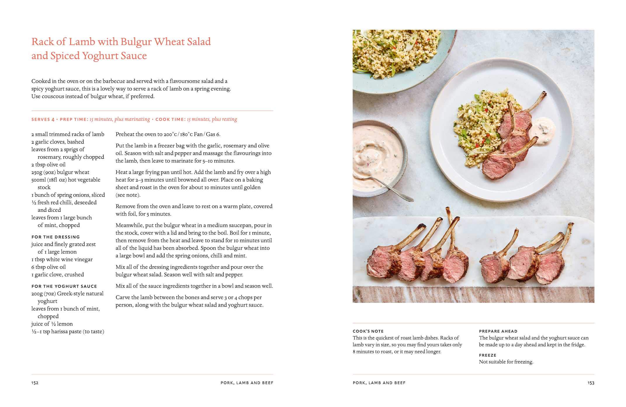 Looking for a fast, satisfying supper? There’s Crumble fish pie, Lamb tagine with preserved lemon or Pan-fried spiced falafels. Something special for Sunday lunch or dinner with friends? Roast Venison fillet and peppercorn sauce, 30-minute Beef ragu or Roast fillet pork with sage and mustard sauce followed by Upside-down rhubarb pudding.