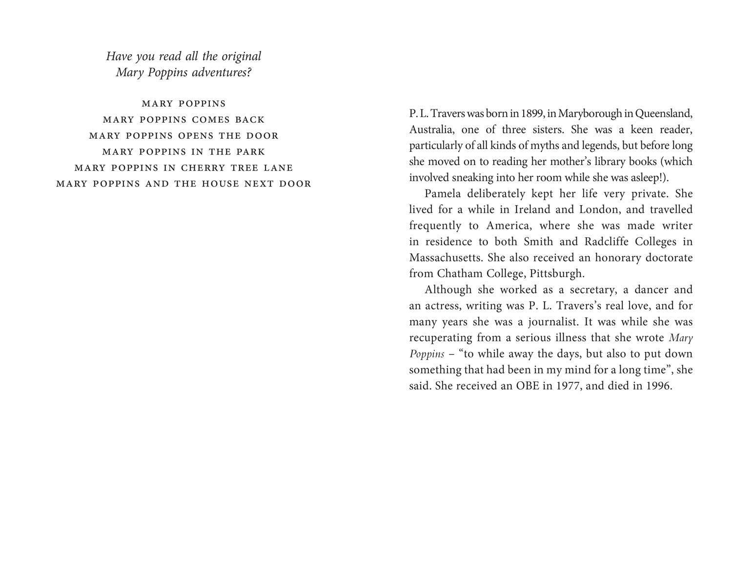 Ninety years since we first met Mary Poppins, this original, classic story is still charming readers and transporting new fans into the mysterious world of everyone's favourite magical nanny.