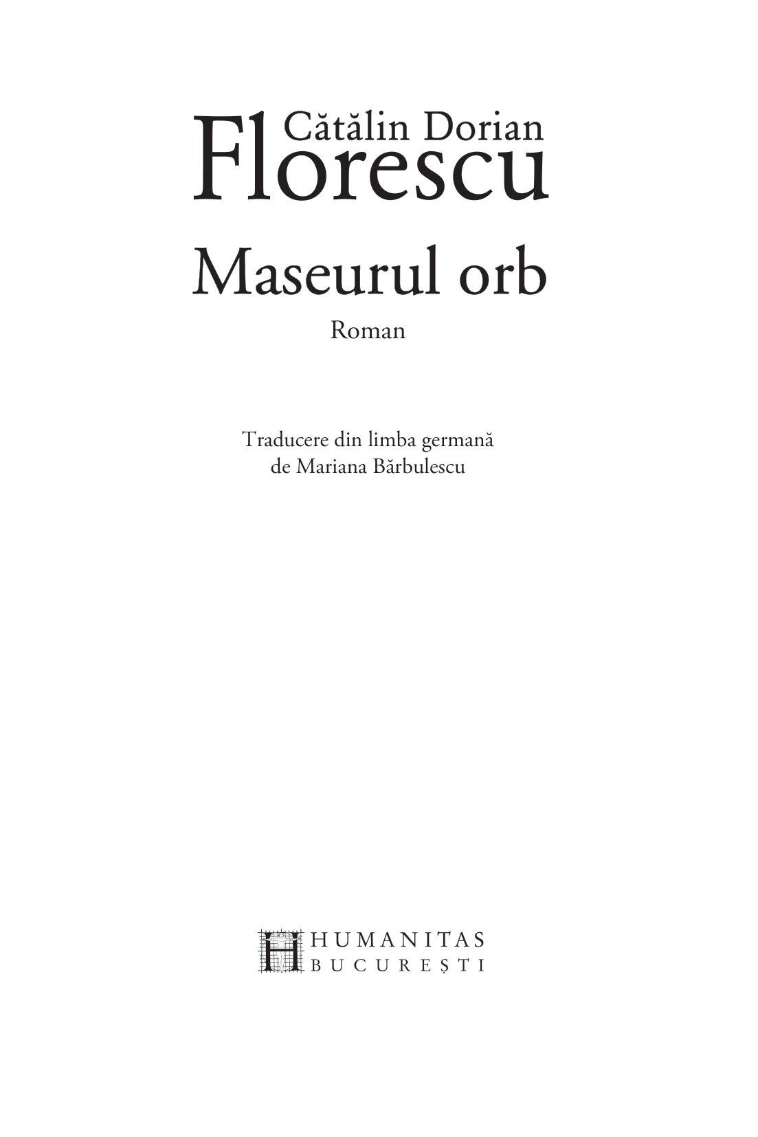 „În Maseurul orb, Cătălin Dorian Florescu a reușit să creeze un portret plin de iubire, deși sarcastic al noii Românii vechi – un roman pictat în culori luxuriante despre pofta, dorul și disperarea unor oameni pentru care viața de zi cu zi pare fragilă și puterea povestirii, invincibilă.“ — Deutschlandradio