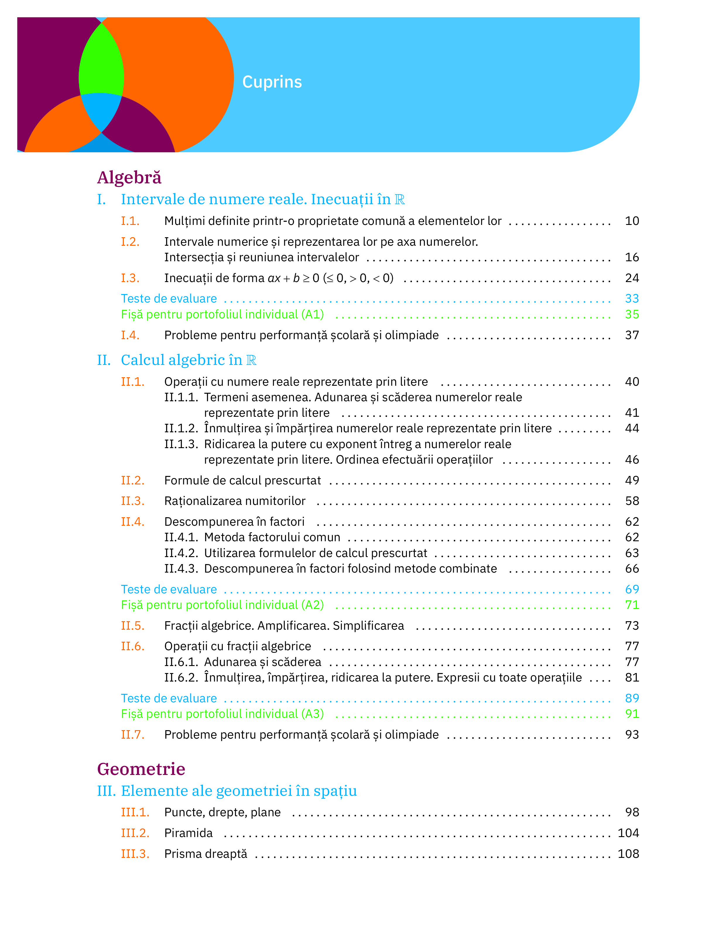 Lucrarea a fost realizată în conformitate cu noua programă şcolară pentru disciplina Matematică, clasele a V-a- a VIII-a, aprobată prin O.M. nr. 3393/28.02.2017.