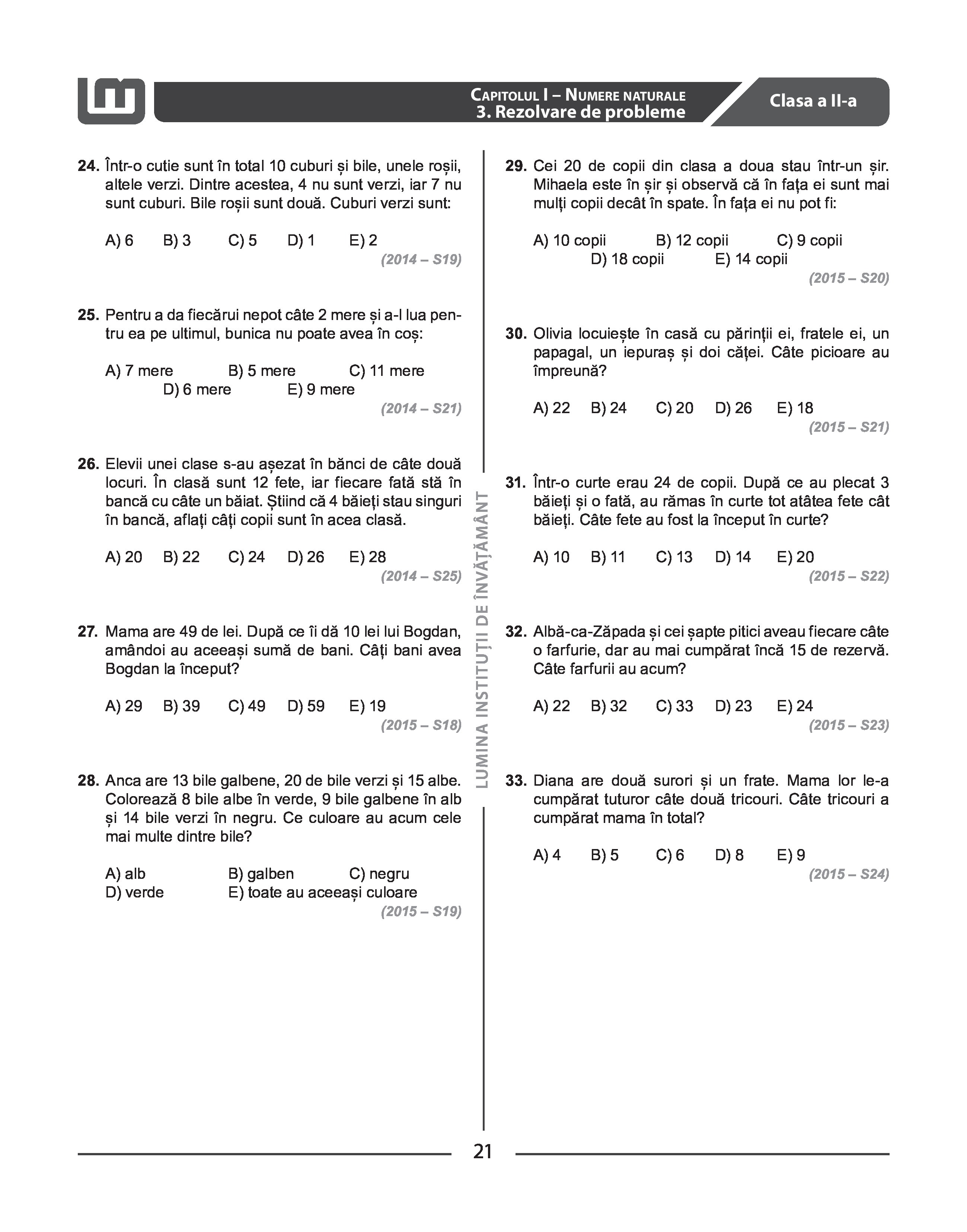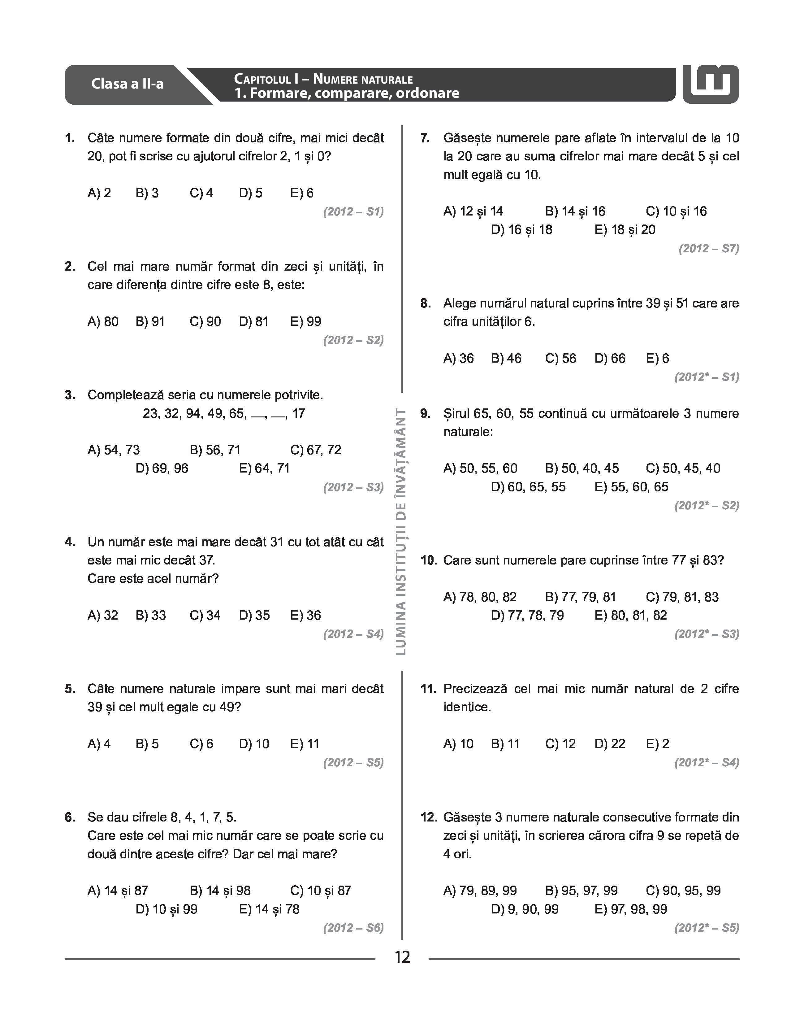 Clasa a II-a - Matematica, Clasa a III-a - Matematica, Clasa a IV-a - Matematica