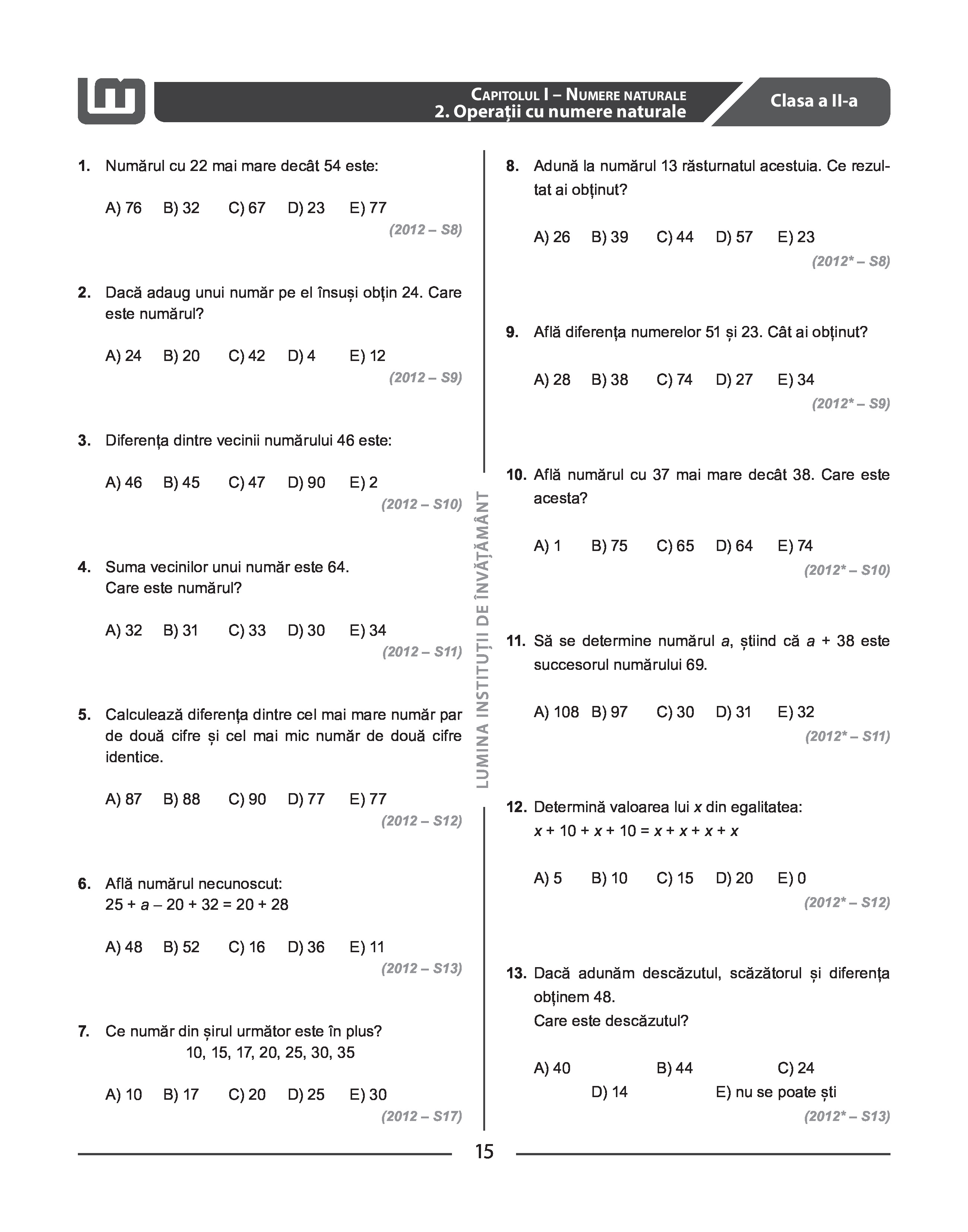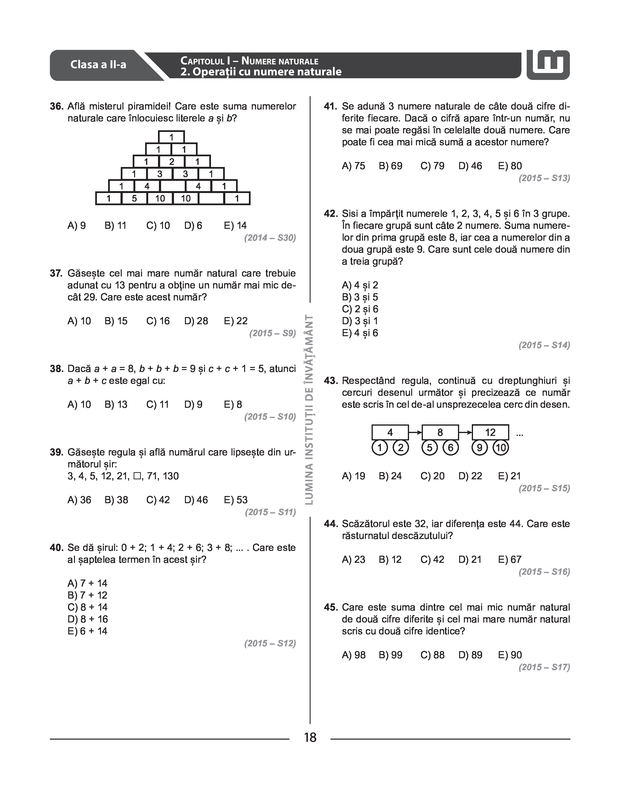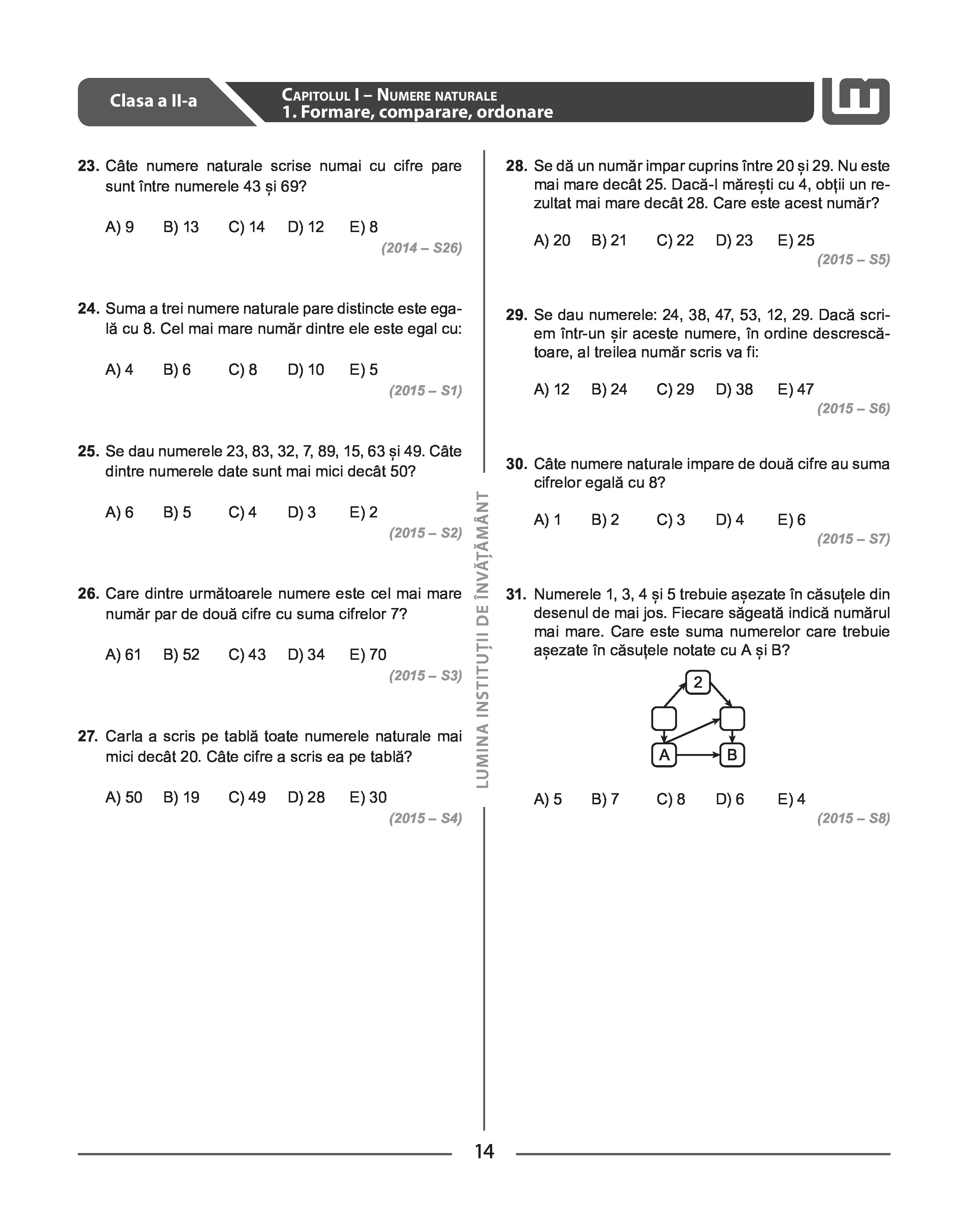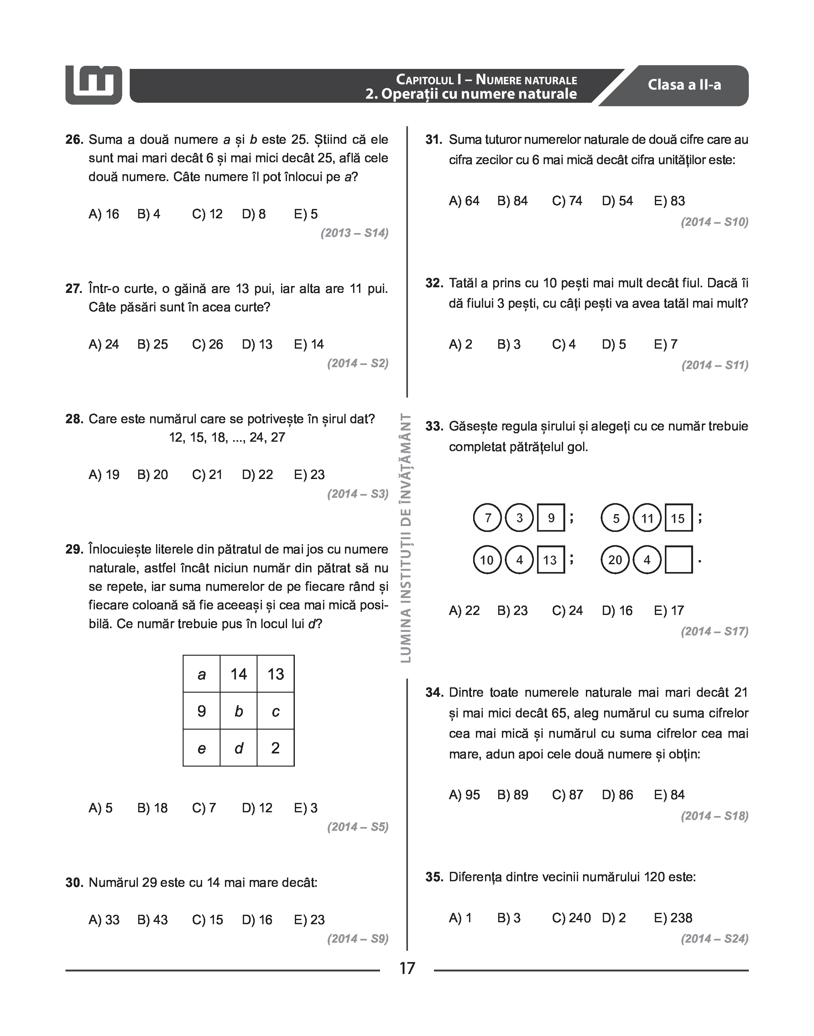 • Matematica. Culegere de probleme pentru clasele II-IV. LuminaMath
