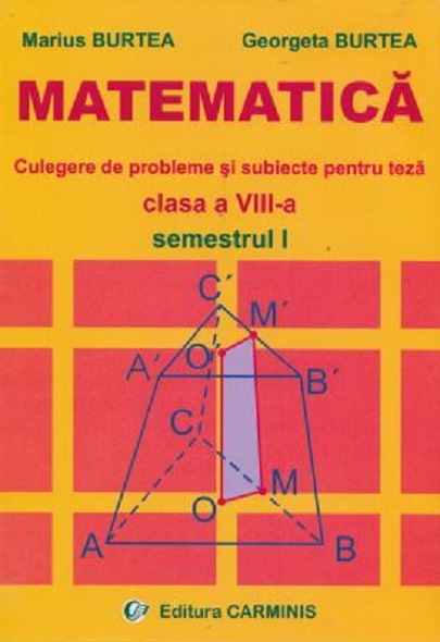Lucrarea Matematica. Culegere de probleme si subiecte pentru teza. Clasa a VIII-a. Semestrul I este gandita si elaborata in conformitate cu programa scolara, ca un instrument de lucru complementar manualelor alternative, necesar pentru exersarea si aprofundarea cunostintelor funda-mentale, dar si a celor menite sa asigure performanta in matematica.