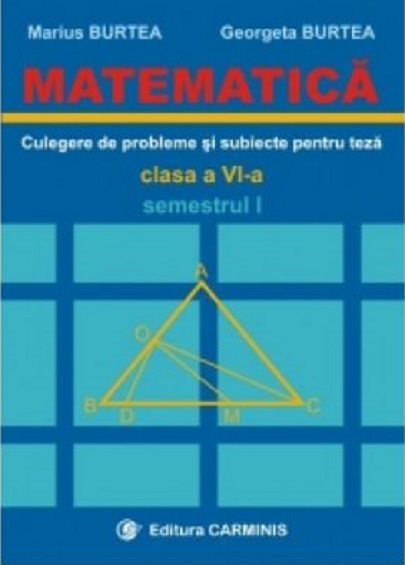 Lucrarea „Matematica. Culegere de probleme si subiecte pentru teza. Clasa a VI-a. Semestrul I“ este gandita si elaborata in conformitate cu programa scolara, ca un instrument de lucru complementar manualelor alternative, necesar pentru exersarea si aprofundarea cunostintelor fundamentale, dar si a celor menite sa asigure performanta in matematica.