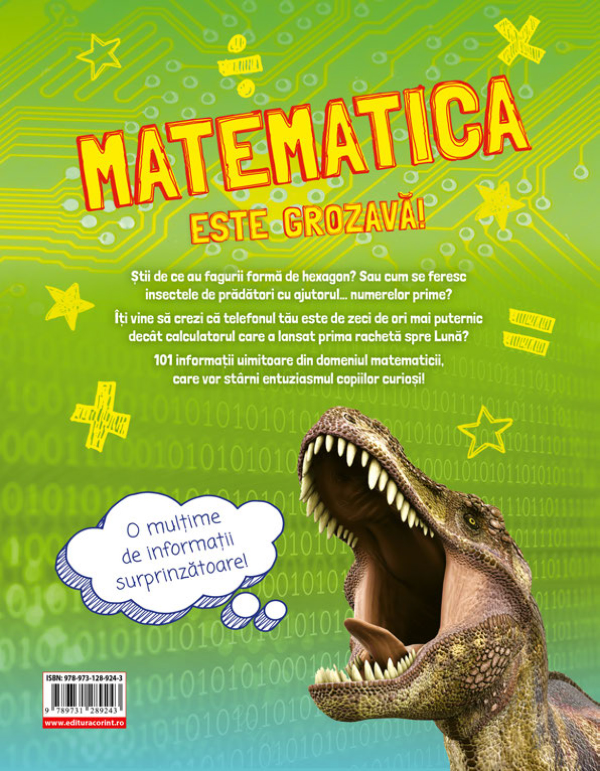 Matematica este grozavă! este una din cărțile pentru copii cu scop educativ într-o formă ludică. Ştii de ce au fagurii formă de hexagon? Sau cum se feresc insectele de prădători cu ajutorul… numerelor prime? Îți vine să crezi că telefonul tău este de zeci de ori mai puternic decât calculatorul care a lansat prima rachetă spre Lună? 101 informaţii uimitoare din domeniul matematicii, care vor stârni entuziasmul copiilor curioși!