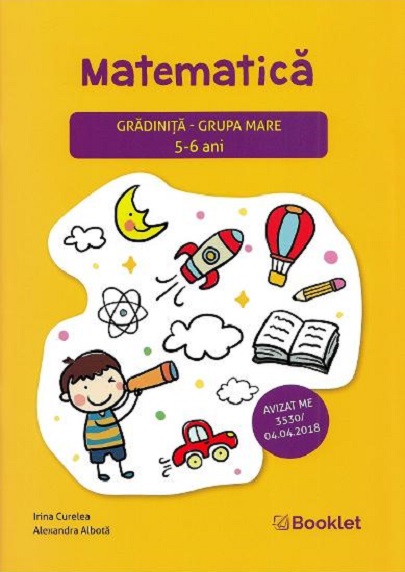 Caietul Matematica - Grupa mare 5-6 ani este Avizat ME 3530/04.04.2018.Caiet de activitati didactice pentru ciclul prescolar.