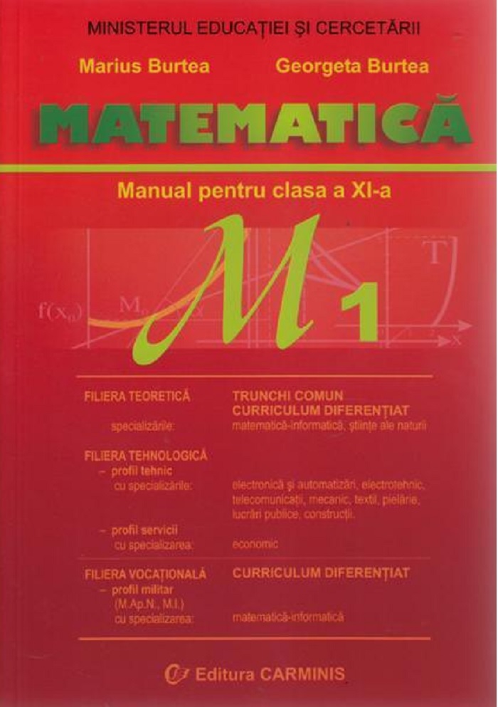 Matematica. Clasa a XI-a“ este o culegere de exercitii si probleme elaborata pe baza noului curriculum scolar pentru clasa a XI-a, de tipul M1 si M2 si este in deplina concordanta cu manualul de matematica pentru clasa a XI-a, elaborat de aceiasi autori. Lucrarea este alcatuita din doua parti: I. Elemente de algebra liniara. II. Elemente de analiza matematica. Prima parte cuprinde exercitii si probleme de algebra structurate pe urmatoarele capitole din programa scolara: Permutari, Matrice, Determinanti, Sisteme de ecuatii liniare, Probleme si teste recapitulative. Partea a doua a lucrarii cuprinde exercitii si probleme de analiza matematica structurate pe urmatoarele capitole: Multimea numerelor reale, Siruri de numere reale, Limite de functii, Functii continue, Functii derivabile, Reprezentarea grafica a functiilor. Exercitiile si problemele alese sunt de diferite grade de dificultate, pornind de la simplu la complex, astfel incat sa permita atat fixarea cunostintelor de baza, cat si antrenarea in vederea obtinerii de performante in domeniu.