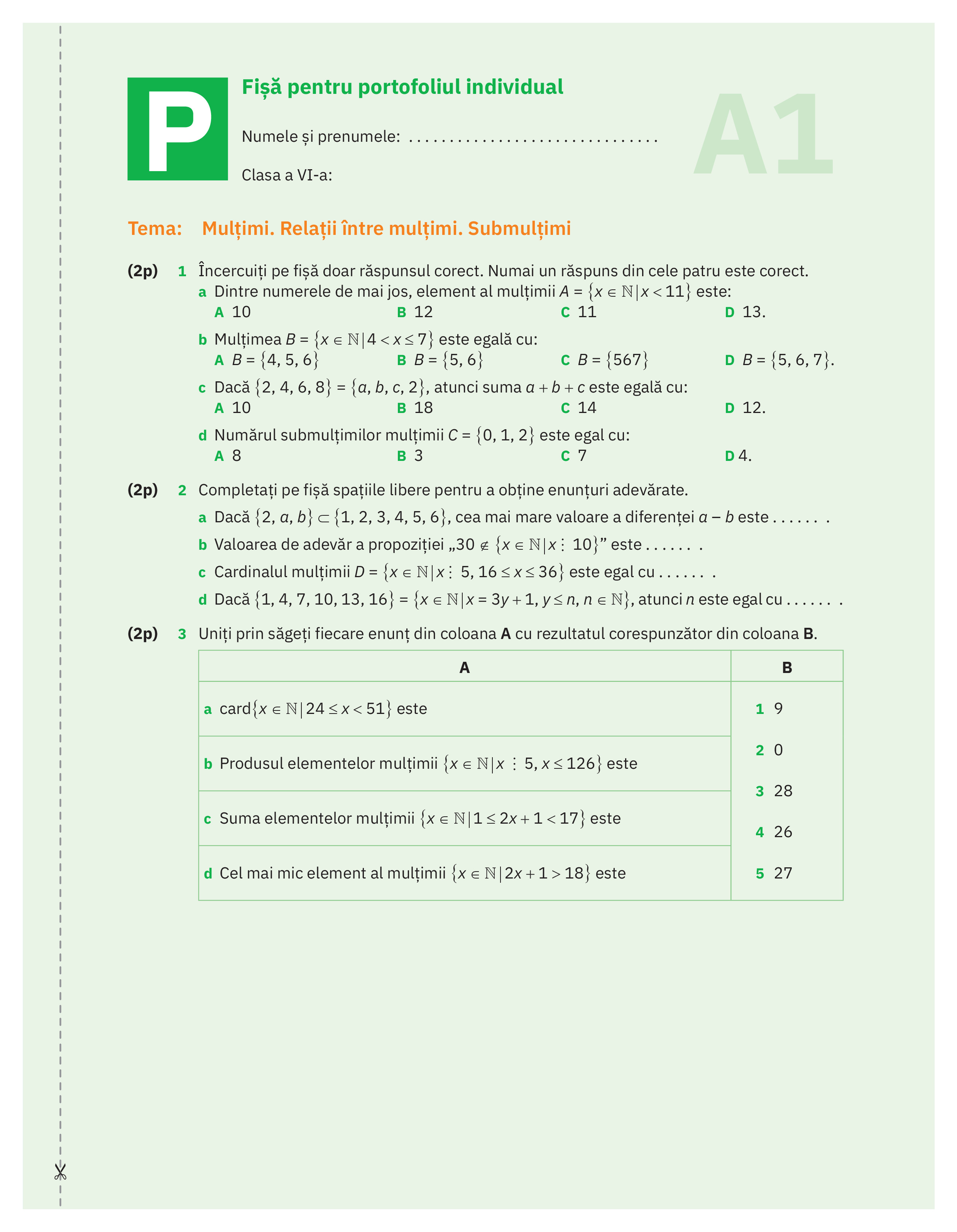 • fişe de evaluare care pot fi detaşate pentru a fi păstrate în portofoliul elevului