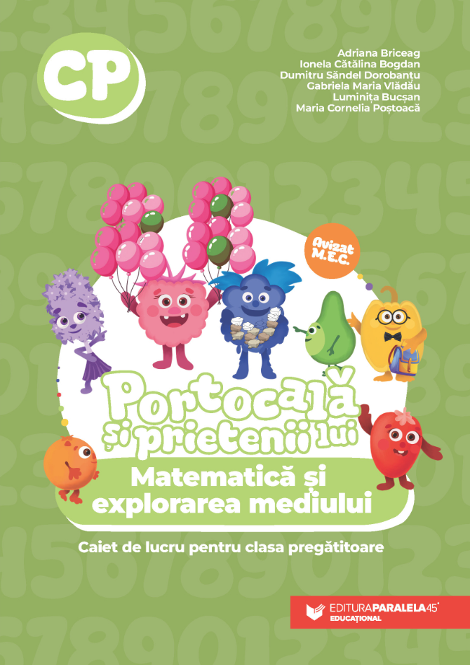 Auxiliarul Portocală și prietenii lui. Matematică și explorarea mediului. Caiet de lucru pentru clasa pregătitoare urmează cu fidelitate programa școlară în vigoare, fiind destinat utilizării pe parcursul întregului an școlar.