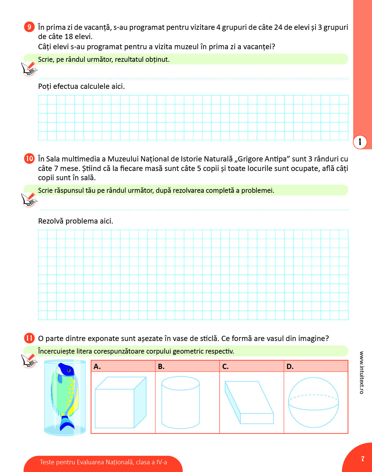 Caietul Matematică - Teste pentru Evaluarea Națională, clasa a 4-a pune la dispoziție teste care respectă structura, aspectul, numărul de itemi și modul de parcurgere a celor de la Evaluarea Națională.