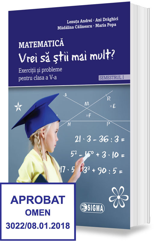 Auxiliarul de matematică „Vrei să ştii mai mult?”, respectă structura tematică a manualului de Matematică de clasa a V-a de la Editura SIGMA. Auxiliarul răspunde nevoilor de învăţare ale elevilor şi este complementar acestui manual. Este realizat pentru fiecare dintre cele două semestre ale clasei a V-a, în conformitate cu Programa şcolară aprobată prin O.M. nr. 3393-28.02.2017.