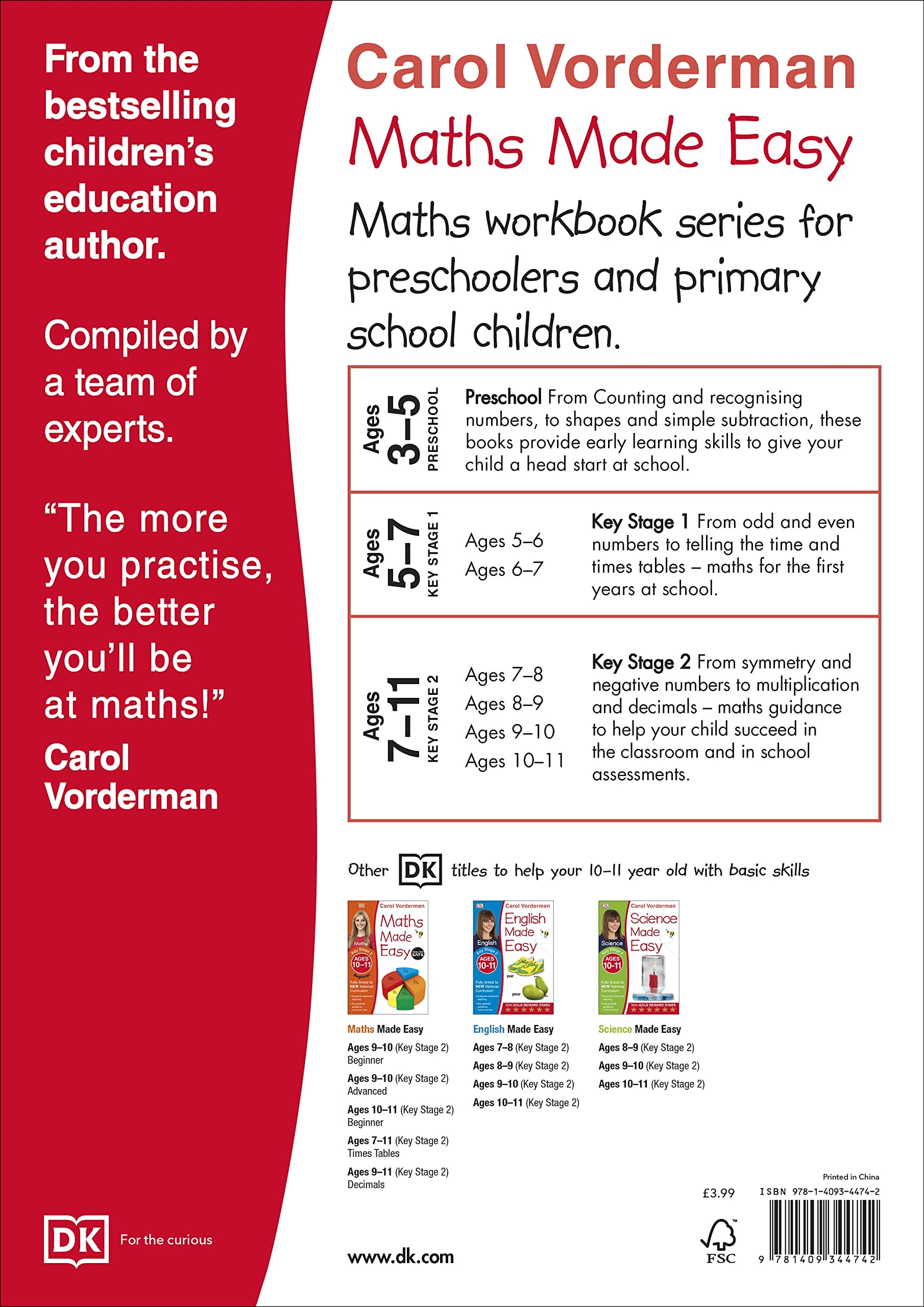Let Carol Vorderman help your child succeed in Maths. Maths Made Easy is one of Carol Vorderman's series of workbooks packed with notes and tips to make learning about Maths easy and fun! Follow the exercises and activities with your child to strengthen their learning in school, then reward them with gold stars for their efforts. Each title contains a progress chart so your child can keep track of all the exercises they have completed and parents' notes explain what children need to know at each stage and what's being covered in the curriculum so you can support your child.