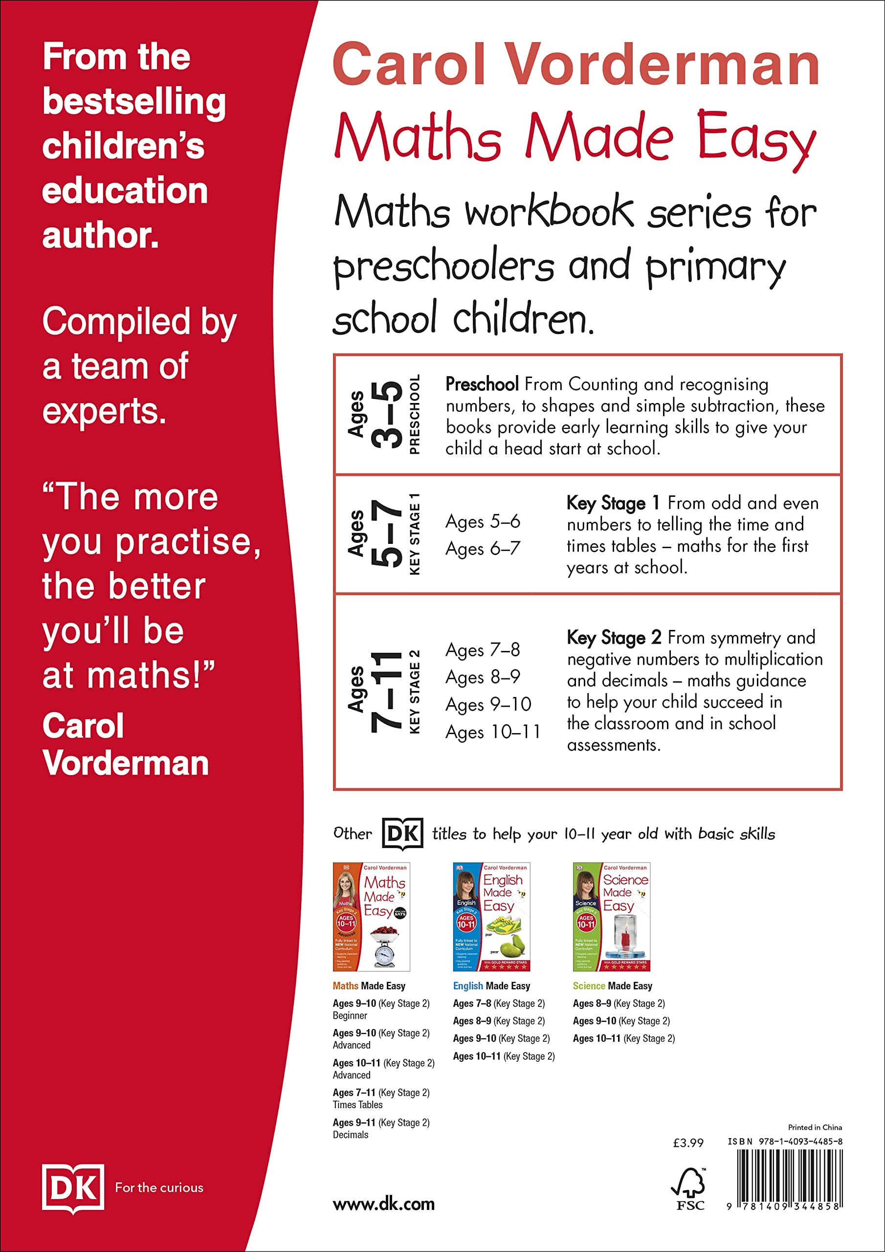 Let Carol Vorderman help your child succeed in Maths. Maths Made Easy is one of Carol Vorderman's series of workbooks packed with notes and tips to make learning about Maths easy and fun! Follow the exercises and activities with your child to strengthen their learning in school, then reward them with gold stars for their efforts. Each title contains a progress chart so your child can keep track of all the exercises they have completed and parents' notes explain what children need to know at each stage and what's being covered in the curriculum so you can support your child.