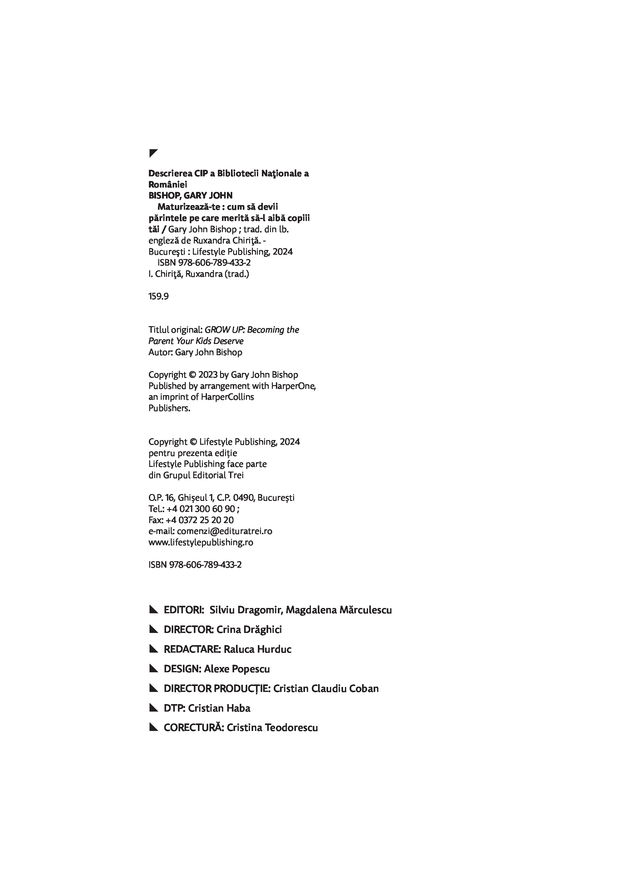 Maturizează-te este o carte din care învățăm cum să depășim teama că nu suntem „părinți buni”, ca să putem deține controlul în tot ceea ce facem și să-i îndrumăm și pe copiii noștri să-și asume responsabilitatea pentru deciziile din viața lor.