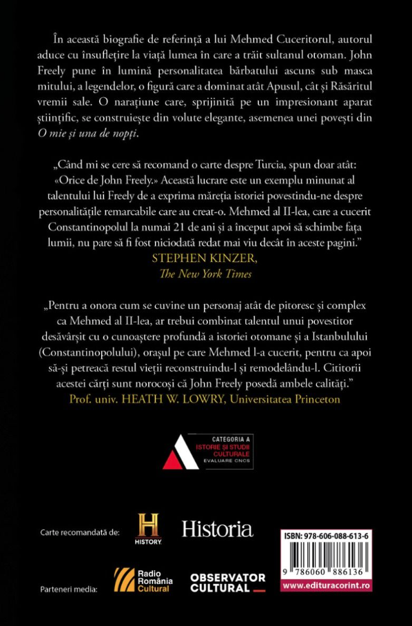 „Pentru a onora cum se cuvine un personaj atât de pitoresc și complex ca Mehmed al II-lea ar trebui combinat talentul unui povestitor desăvârșit cu o cunoaștere profundă a istoriei otomane și a Istanbulului (Constantinopolului), orașul pe care Mehmed l-a cucerit, pentru ca apoi să-și petreacă restul vieții reconstruindu-l și remodelându-l. Cititorii acestei cărți sunt norocoși că John Freely posedă ambele calități.” Prof. univ. HEATH W. LOWRY, Princeton University