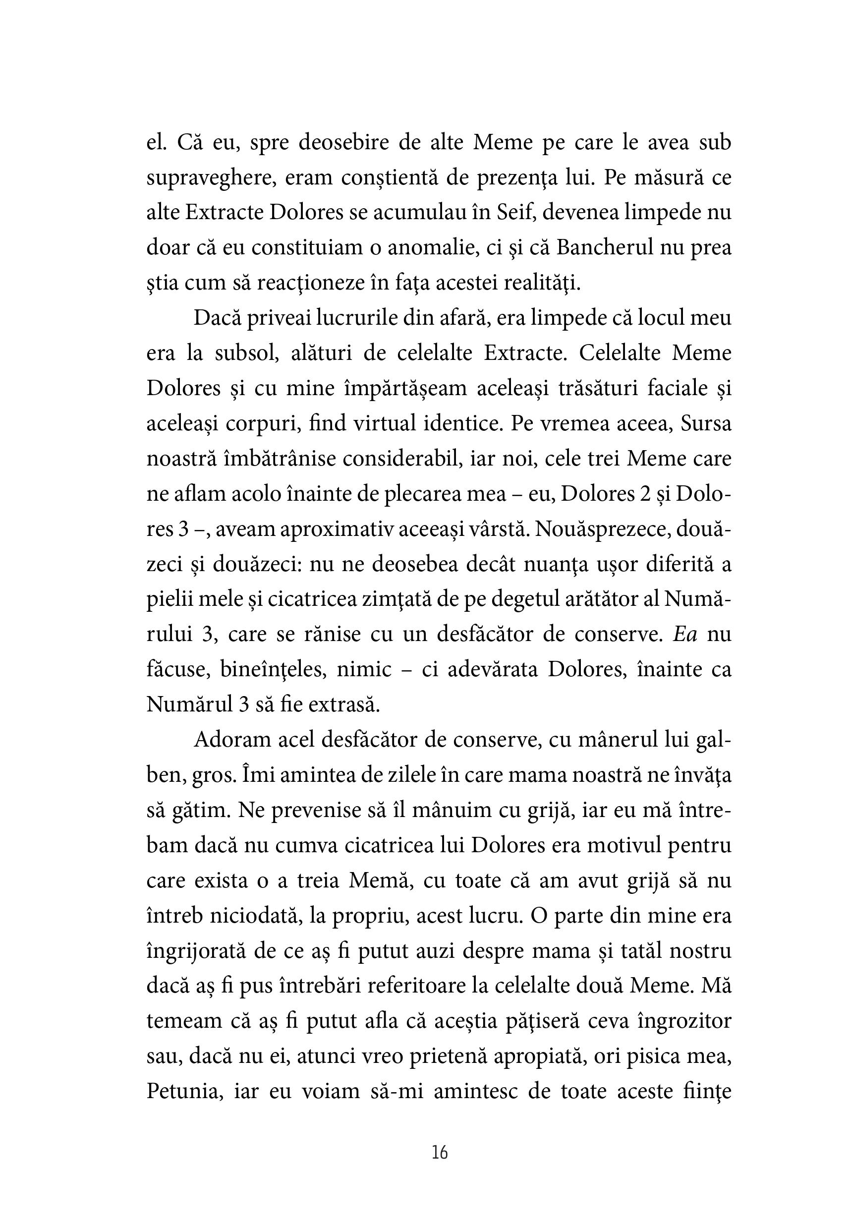 Prima MEMĂ capabilă să dezvolte propriile amintiri, prima MEMĂ căreia i s-a permis să locuiască în afara Seifului și să-și creeze propria viață.