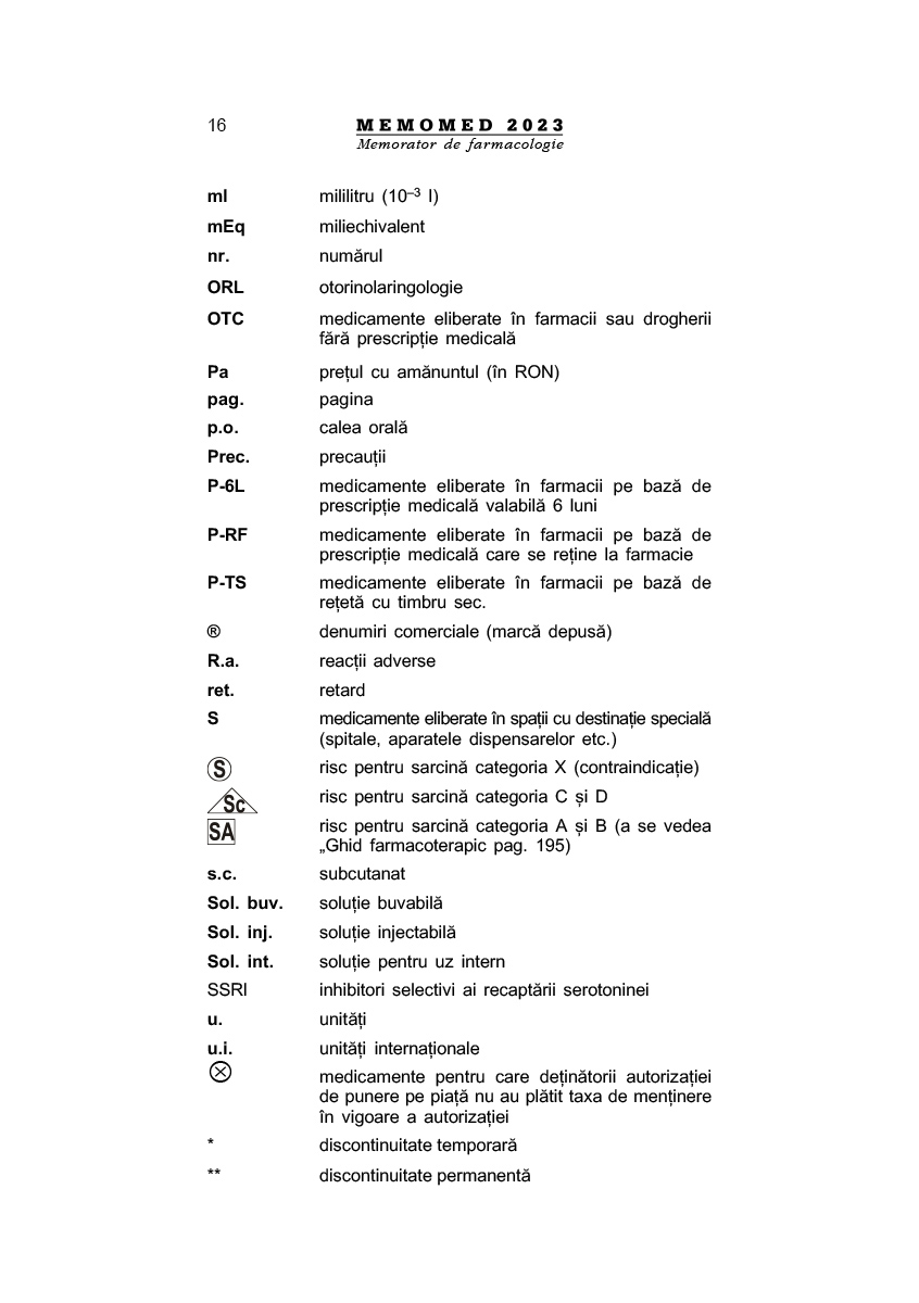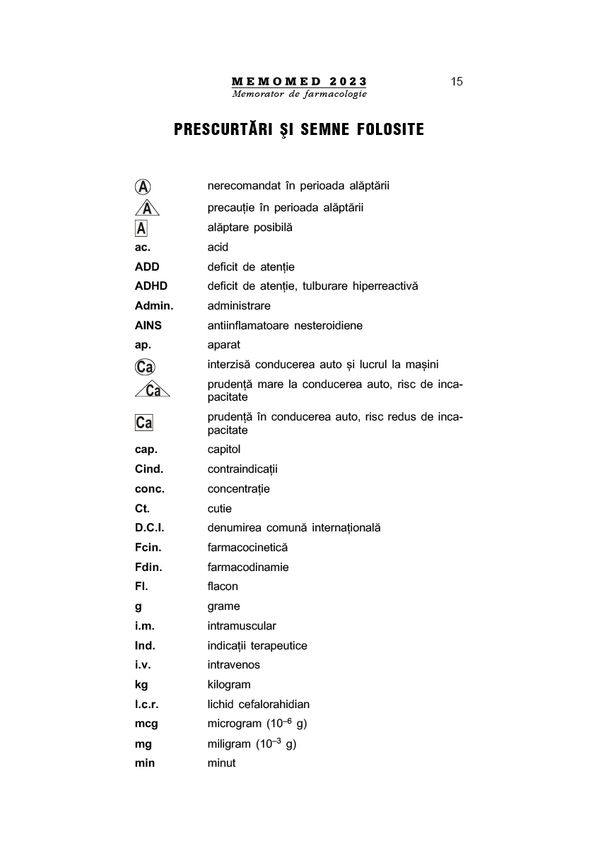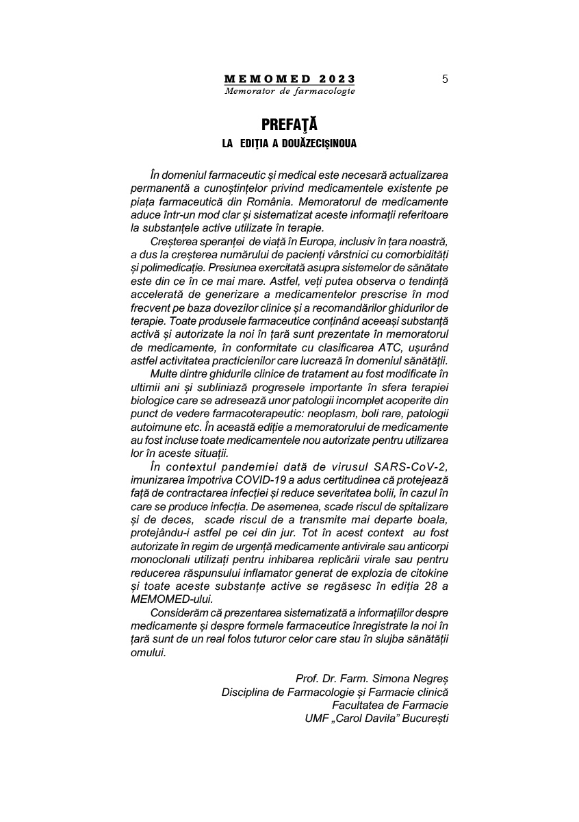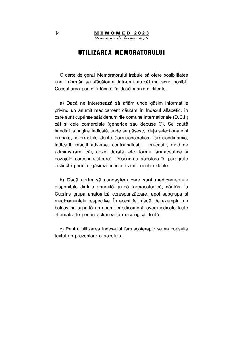 Memoratorul prezintă toate produsele farmaceutice conţinând aceeaşi substanţă activă şi autorizate la noi în ţară, în conformitate cu clasificarea ATC, uşurând astfel activitatea practicienilor care lucrează în domeniul sănătăţii.