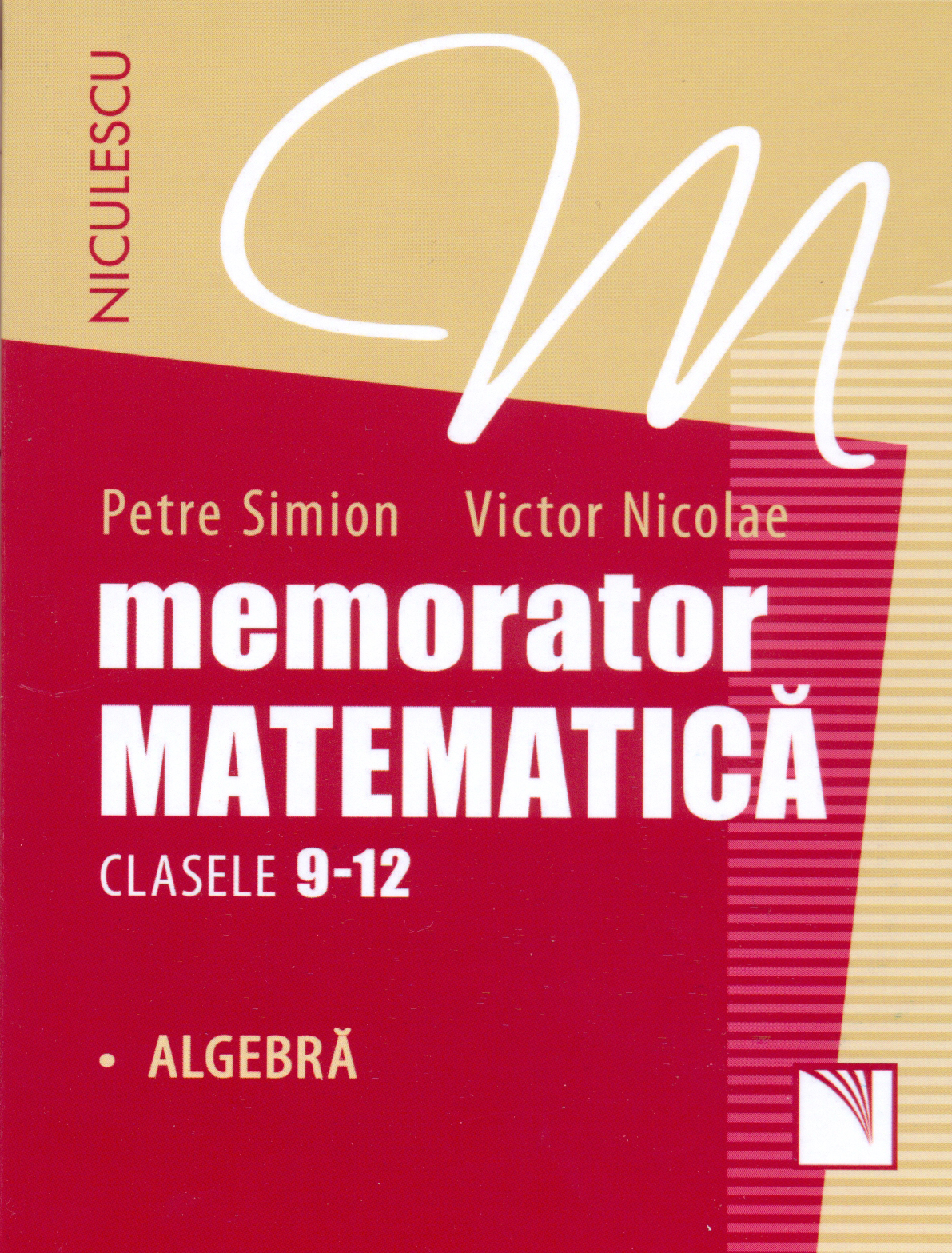 Memorator. Matematică pentru clasele 9-12. ALGEBRĂ este structurat în concordanţă cu programa şcolară în vigoare, fiind un instrument util elevilor de liceu atât pe parcursul celor patru ani de studiu (în timpul învăţării curente şi al recapitulărilor semestriale şi anuale), cât şi pentru pregătirea examenului de Bacalaureat de la sfârşitul clasei a XII-a.