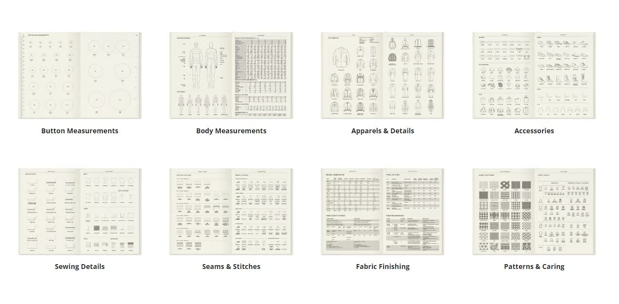 Fashionary sketchbooks streamline fashion development by including a mini fashion dictionary. With professional fashion information where you can refer back instantly, in aid of providing industry terms and jargon to make decisions about stitching, fabric, and methods.