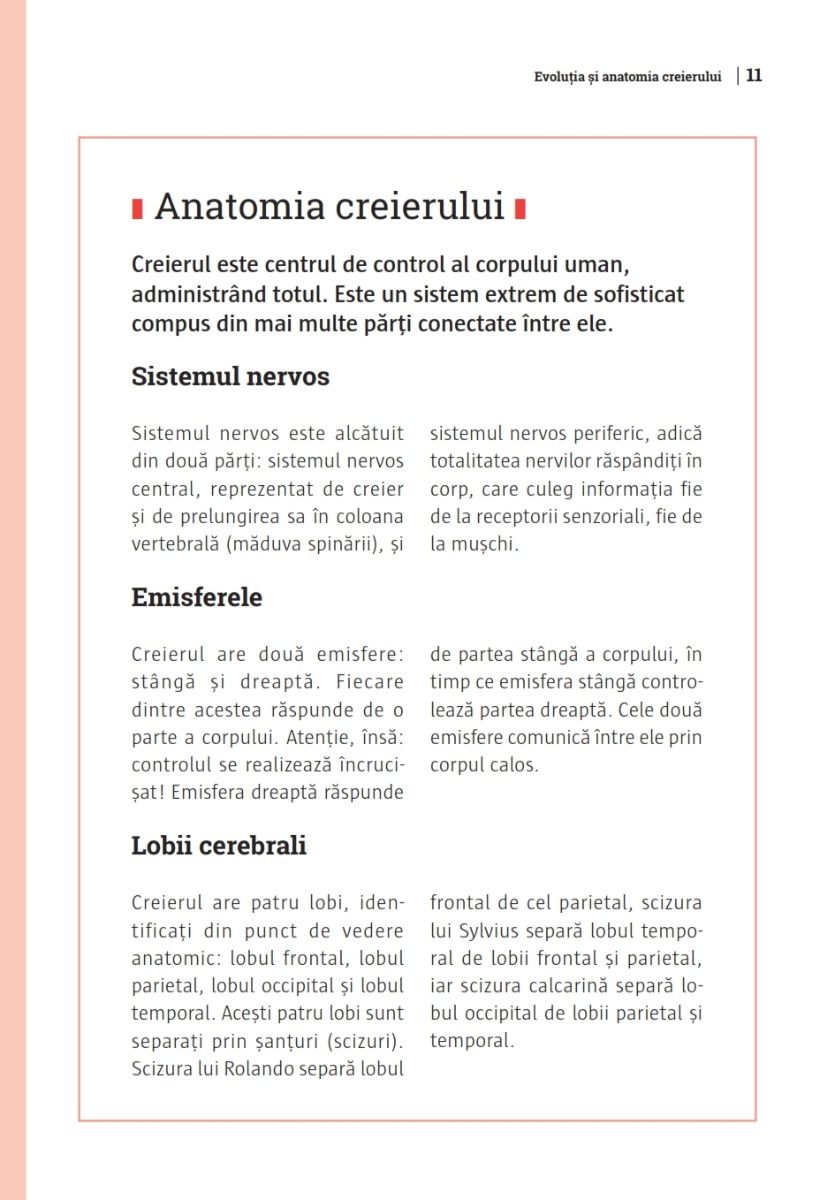 Ghidul de față, bogat ilustrat, vă prezintă toate funcțiile majore ale creierului. Fiecare pagină vă ajută, într-un stil accesibil și, totodată, serios, să cunoașteți, să înțelegeți și să optimizați funcționarea acestui organ esențial pentru sănătatea și starea noastră de bine.