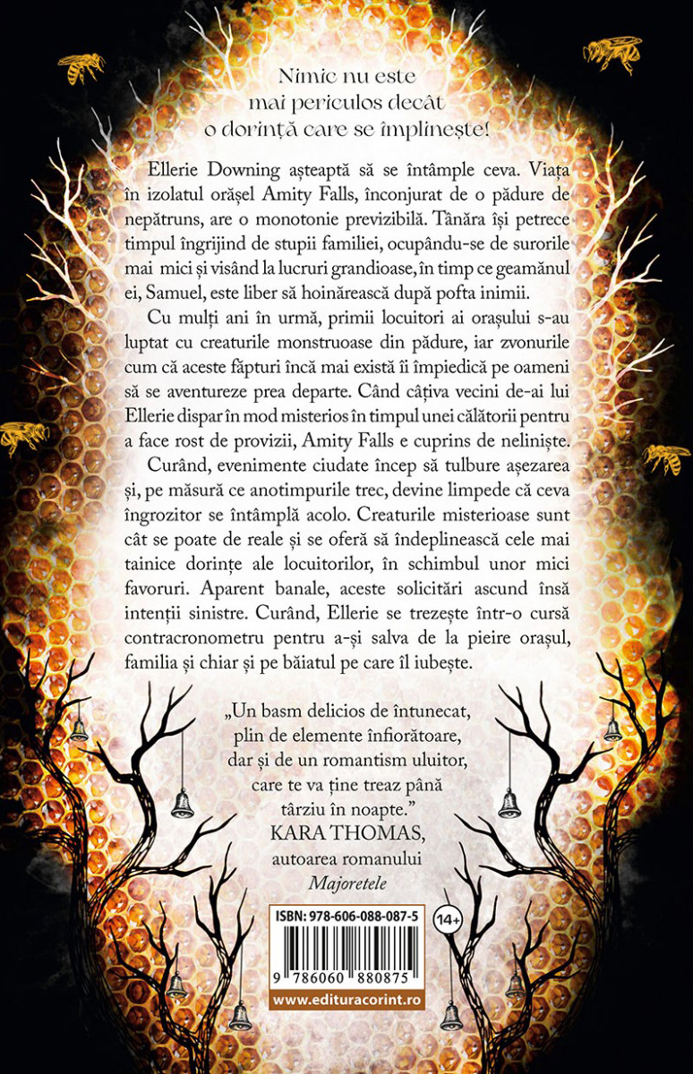 „Un basm delicios de întunecat, plin de elemente înfiorătoare, dar și de un romantism uluitor, care te va ține treaz până târziu în noapte.” KARA THOMAS, autoarea romanului Majoretele