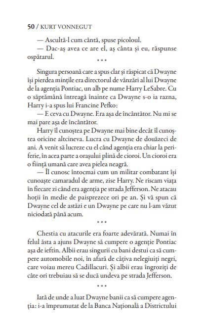 O ferestruică prin care cititorul poate trage cu ochiul la cum privește Vonnegut războiul, sexul, rasismul, politica sau succesul în viață