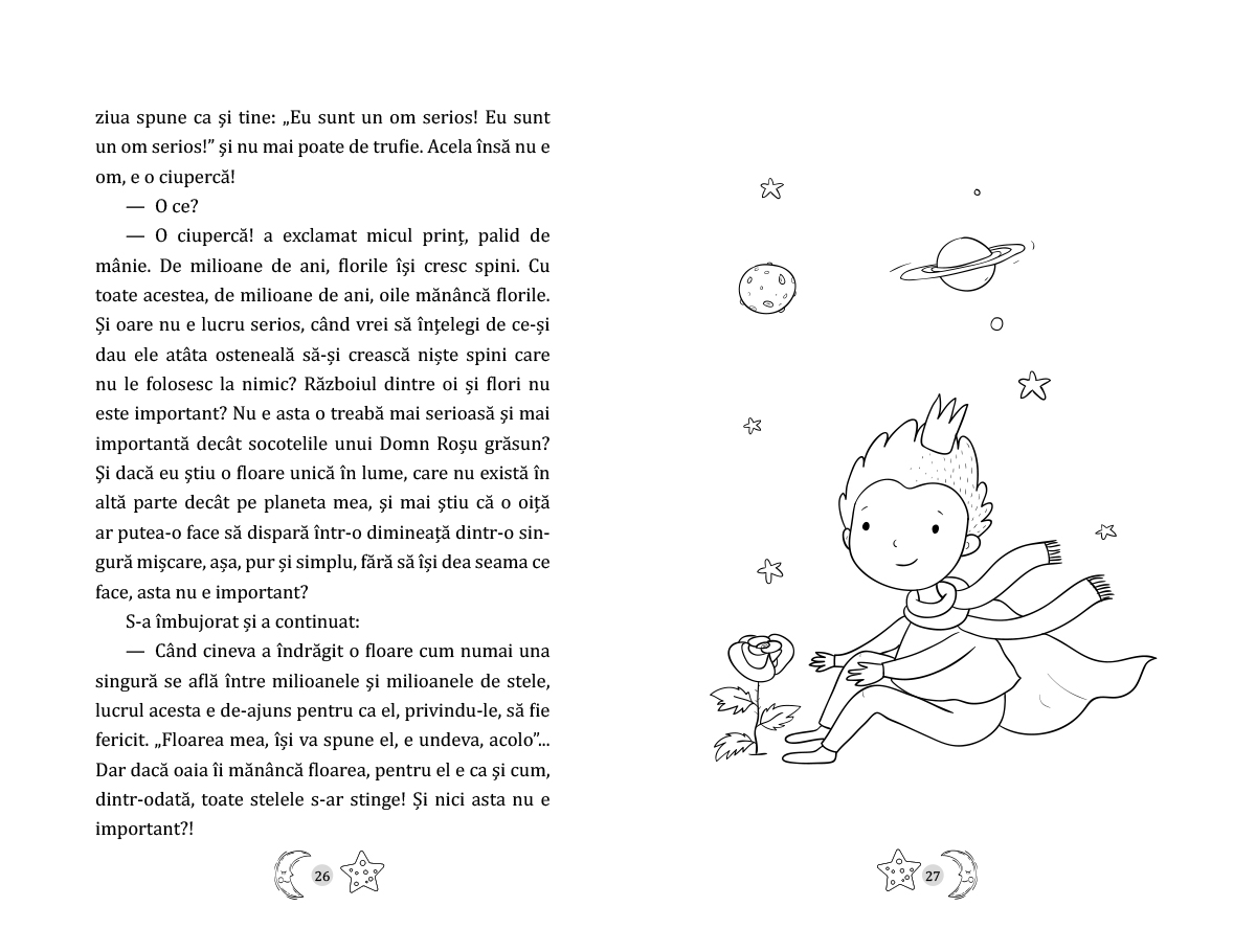 Această ediție este îmbogățită cu ilustrații care surprind farmecul poveștii, oferind o experiență vizuală deosebită pentru cititori de toate vârstele. Textul, accesibil și emoționant, face din Micul Prinț o lectură ideală pentru copii, adolescenți și adulți care vor să redescopere frumusețea lucrurilor simple și importanța sentimentelor autentice.