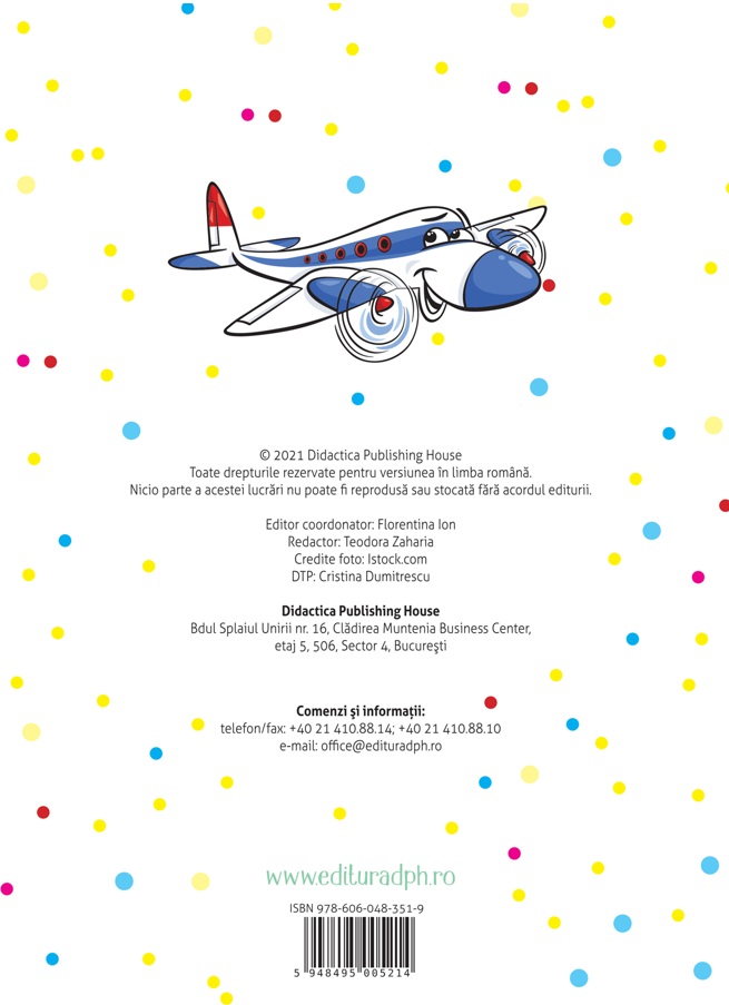 Mijloace de transport – carte de colorat îi va încânta pe copii și îi va face să-și dea frâu liber imaginației și laturii artistice. Se adresează copiilor cu vârstele cuprinse între 3 și 4 ani.