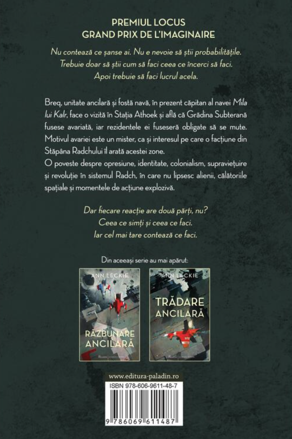 „Dacă nu știți seria Ancilarelor, acum e momentul să faceți cunoștință. O space opera sociopolitică scrisă de Ann Leckie și care a reușit aproape de una singură să insufle o nouă viață în stereotipul navelor spațiale ce plutesc prin sisteme îndepărtate, în mijlocul luptelor cu lasere. Mila ancilară merită toate laudele pe care le-a primit.“ -- NPR Books