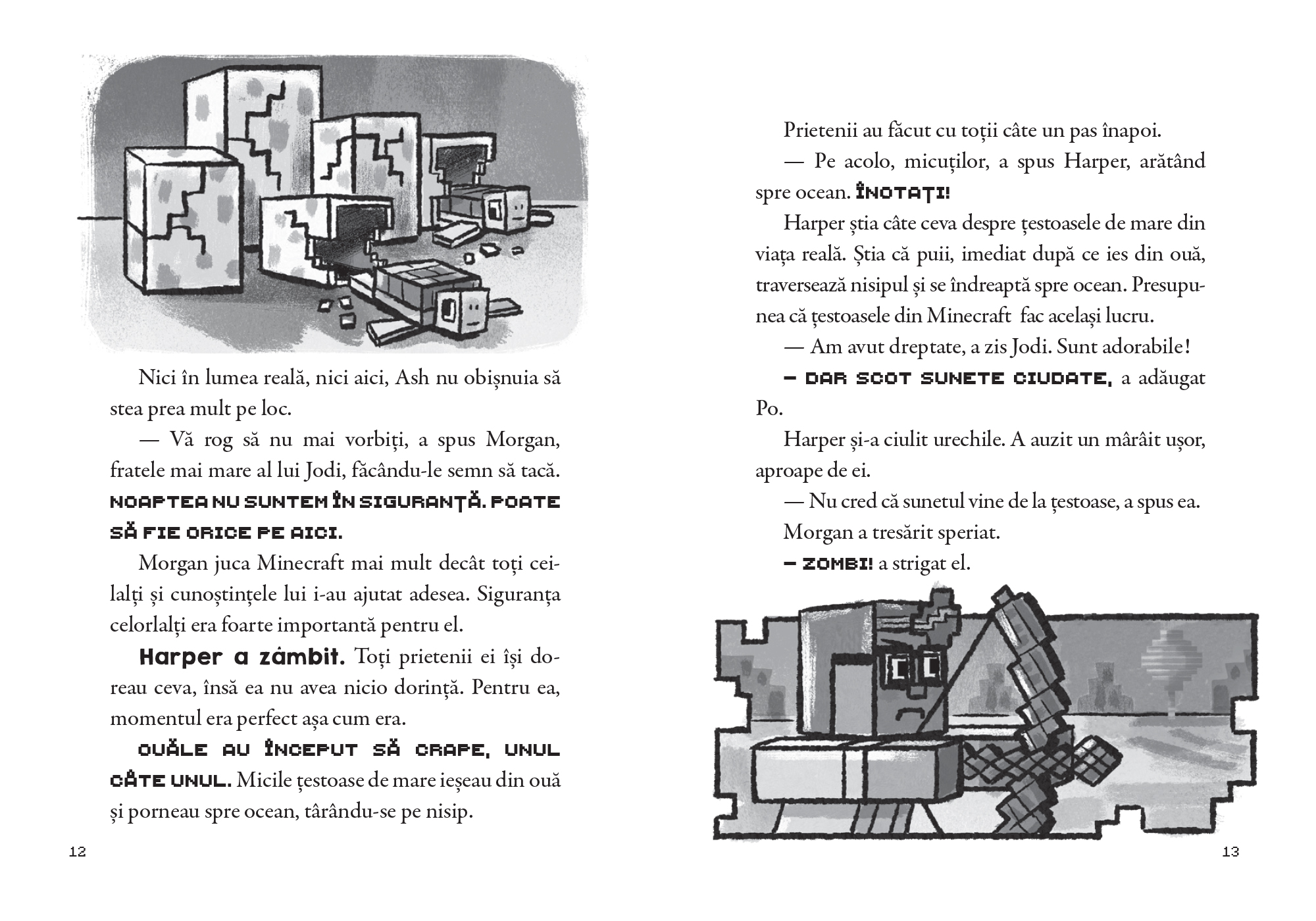 Cu un ritm alert, mult umor și momente tensionate, volumul explorează curajul, colaborarea și modul în care copiii pot depăși fricile atunci când se bazează unii pe alții. Ilustrațiile dinamice transformă lectura într-o experiență cinematică, iar detaliile inspirate din joc îi vor cuceri atât pe fanii Minecraft, cât și pe cititorii care iubesc aventurile cu mister, acțiune și camaraderie.