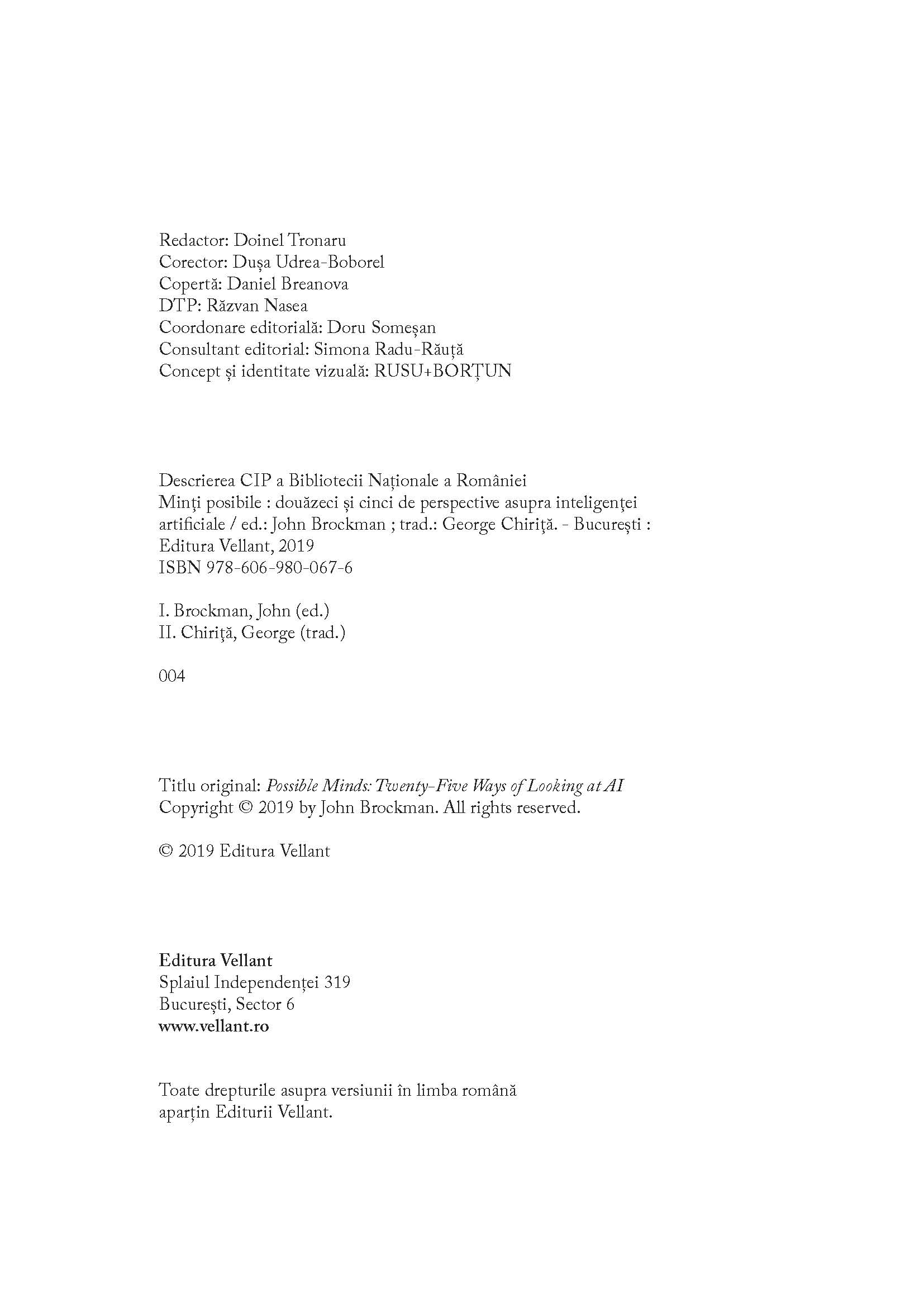 „Douăzeci și cinci de oameni au scris eseuri, fiecare în parte fiind îngrijorat de ce se întâmplă astăzi în era inteligenței artificiale. Minți posibile nu este cartea mea, mai degrabă este cartea noastră: Seth Lloyd, Judea Pearl, Stuart Russell, George Dyson, Daniel C. Dennett, Rodney Brooks, Frank Wilczek, Max Tegmark, Jaan Tallinn, Steven Pinker, David Deutsch, Tom Griffiths, Anca Drăgan, Chris Anderson, David Kaiser, Neil Gershenfeld, W. Daniel Hillis, Venki Ramakrishnan, Alex „Sandy“ Pentland, Hans Ulrich Obrist, Alison Gopnik, Peter Galison, George M. Church, Caroline A. Jones și Stephen Wolfram.”