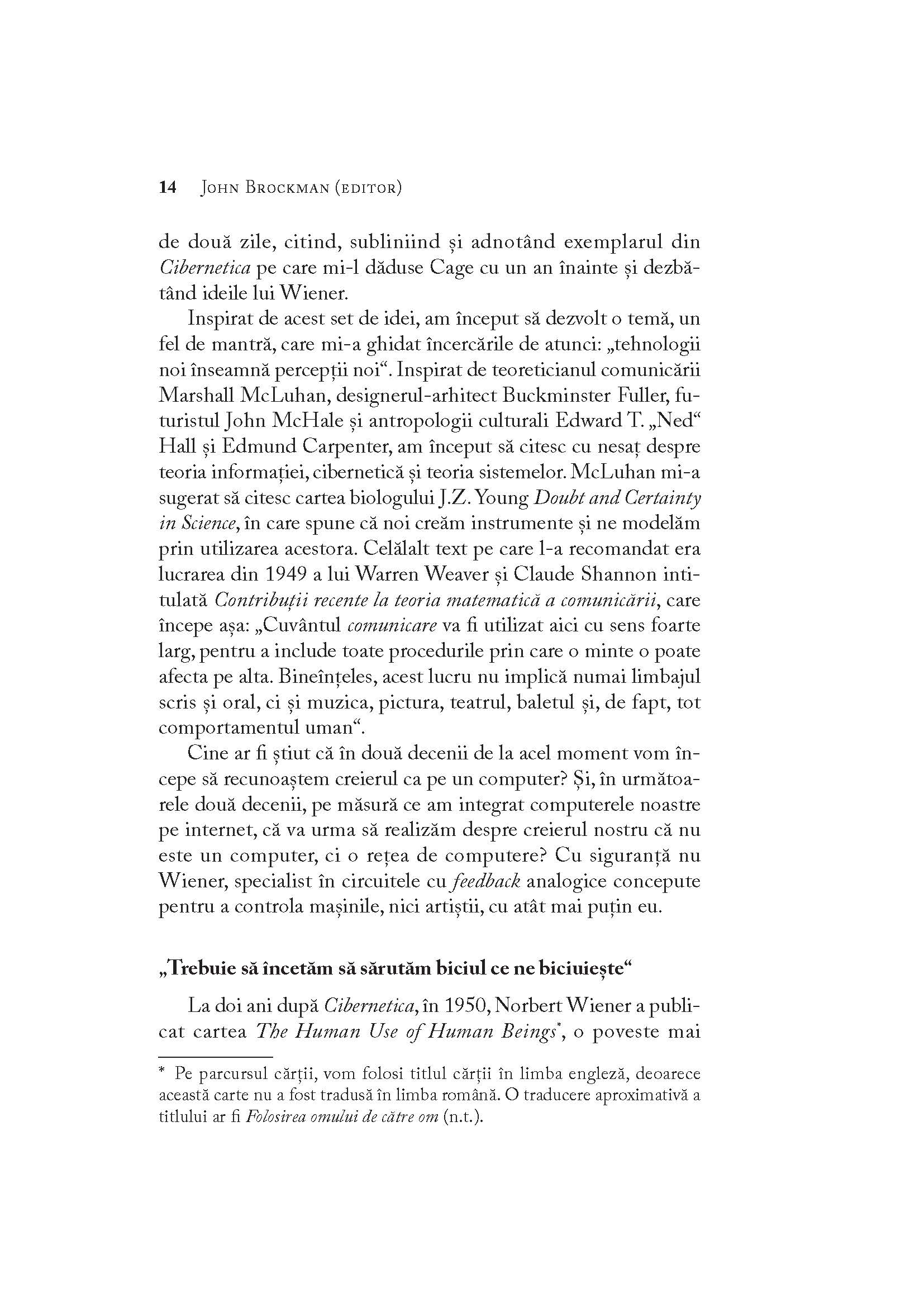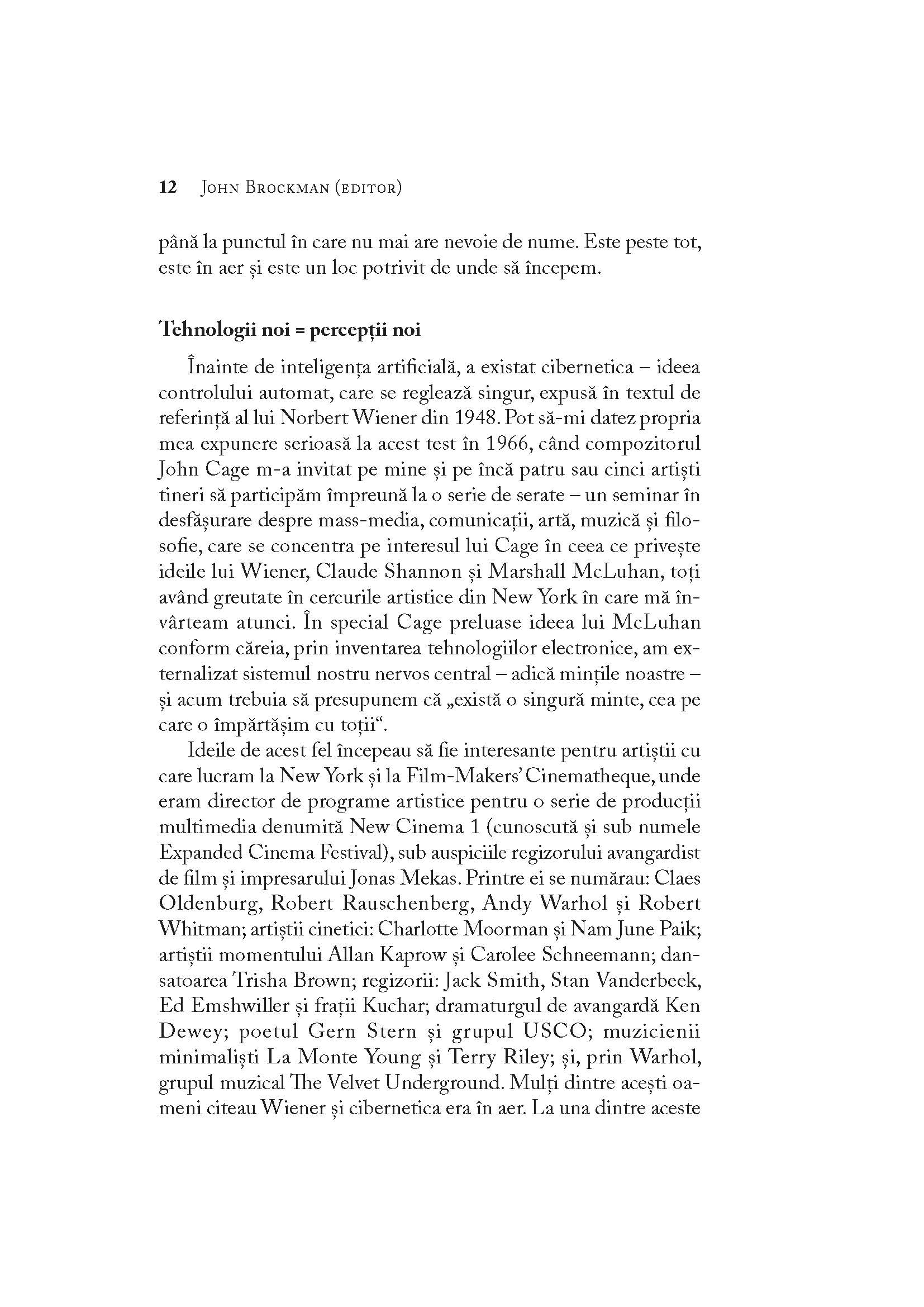 John Brockman este un impresar cultural a cărui carieră s-a intersectat cu domenii precum arta de avangardă, știința, publishing-ul, dezvoltarea de software sau Internetul. Este fondatorul platformei edge.org și editorul seriei de cărți Edge Question, care include titluri precum This Idea is Brilliant, Know This, This Idea Must Die, This Explains Everything, This Will Make You Smarter.