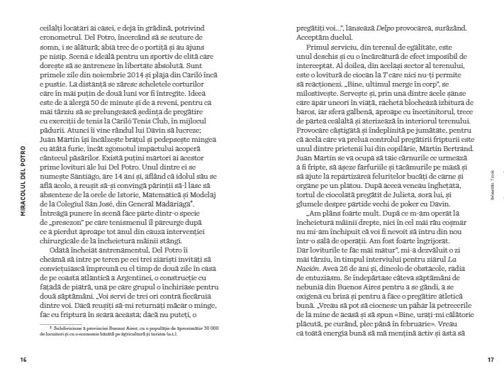 Această carte spune povestea unuia dintre cei mai mari tenismeni ai Argentinei, care și-a câștigat un loc la masa legendelor. În plus, dezvăluie ce se află în spatele miracolului revenirii sale încununate de glorie. După cel mai lung și dureros impas, în urma a trei intervenţii chirurgicale suferite în cincisprezece luni, Delpo a reapărut pe teren, a câștigat a doua sa medalie olimpică și a fost unul dintre eroii visului de a câştiga Cupa Davis, transformat în realitate în 2016 de echipa naţională.